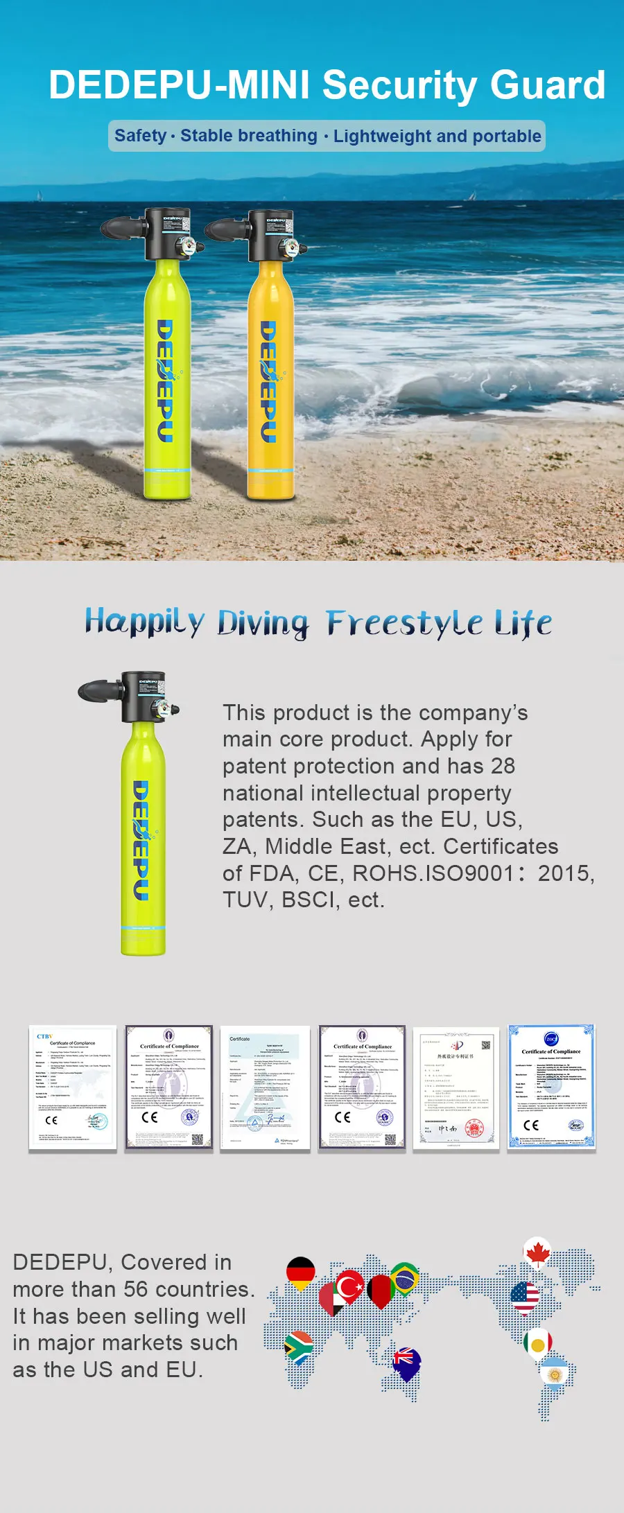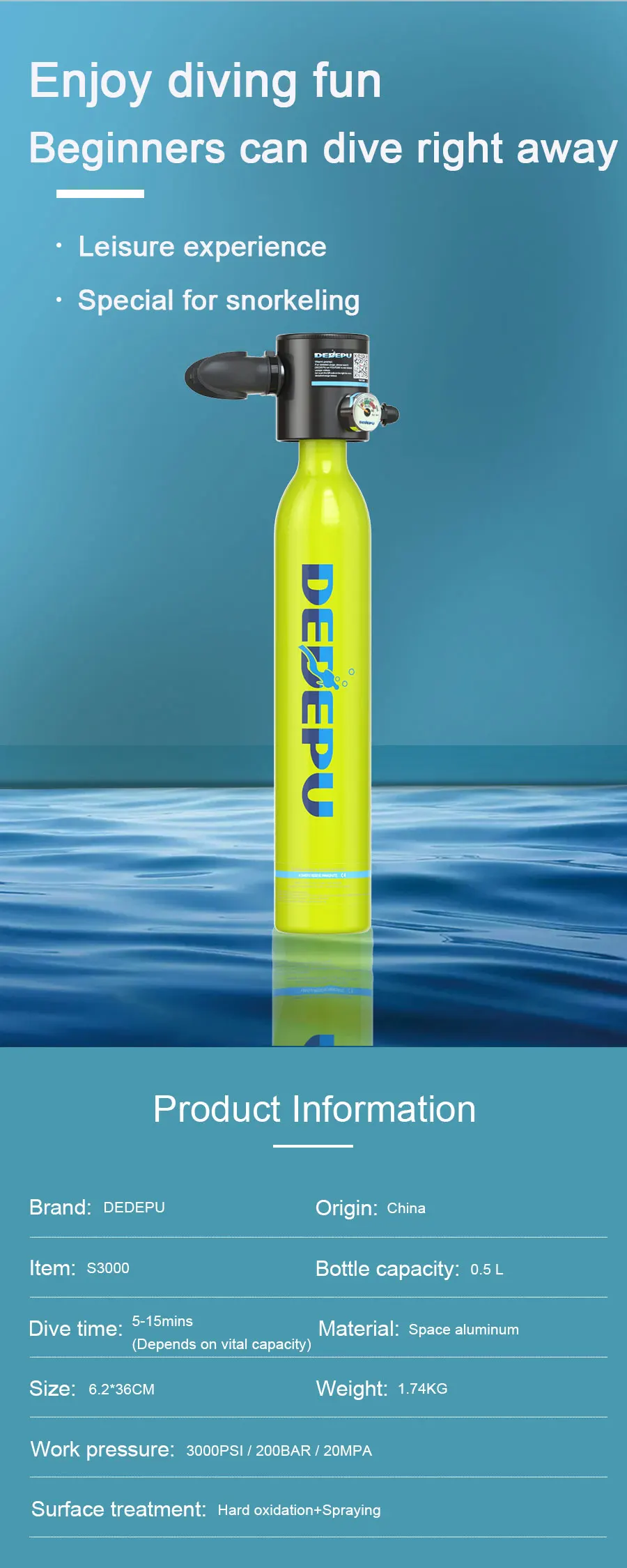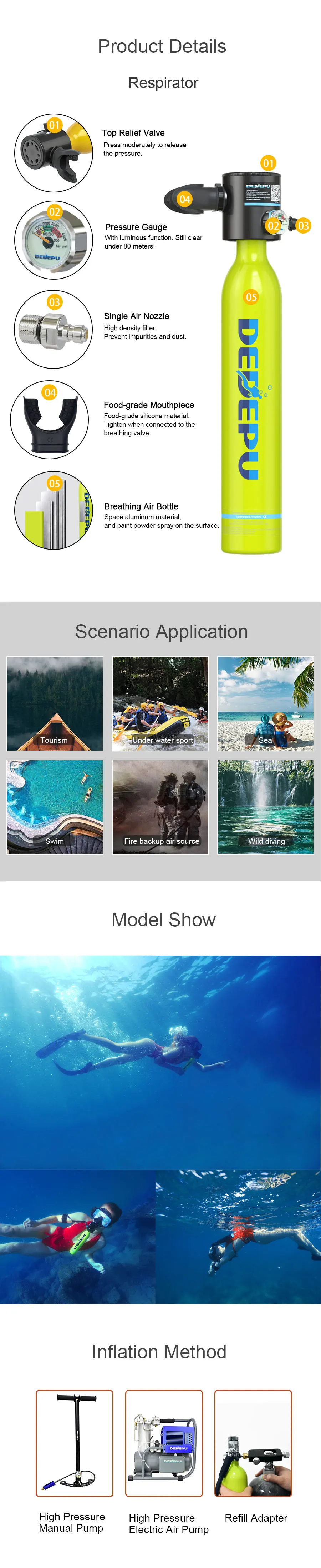 DEDEPU 0.5 L scuba tank Small Scuba Diving Green Air Tank for Underwater Sports