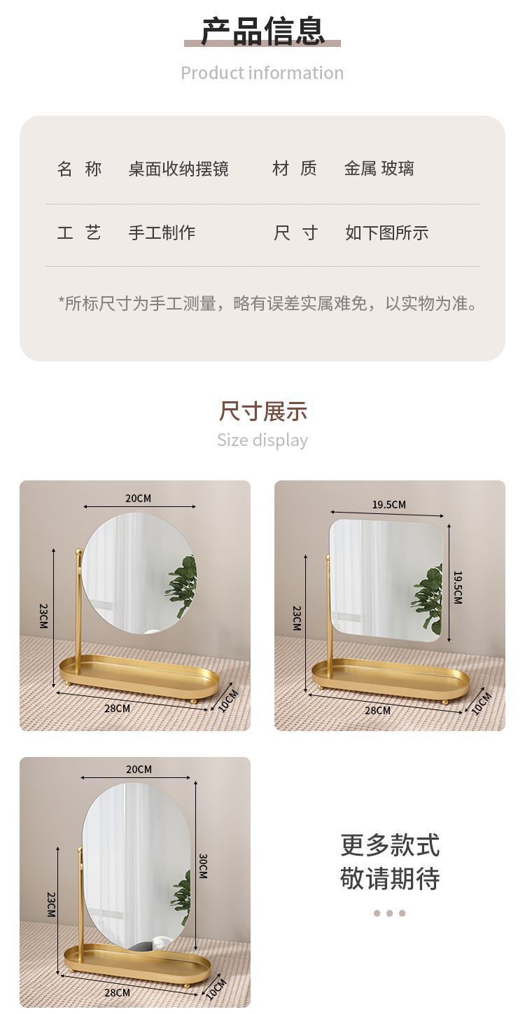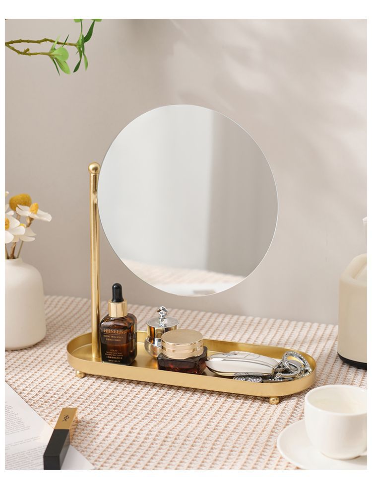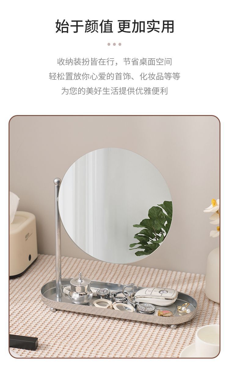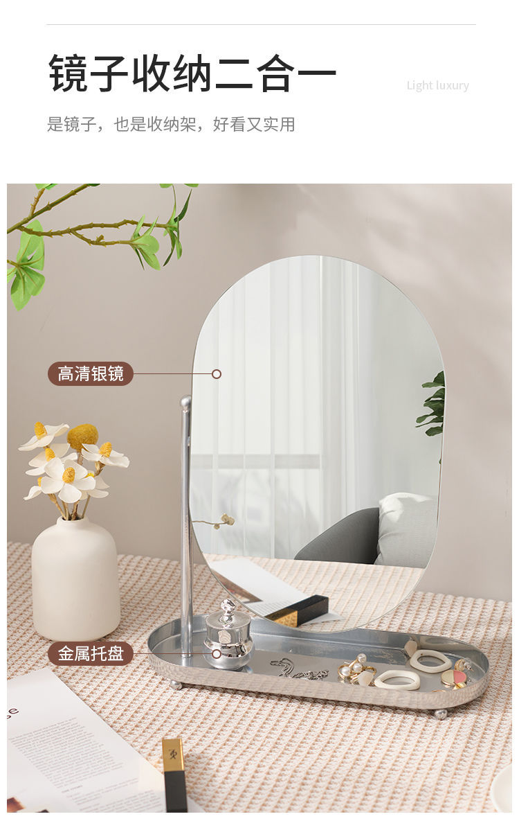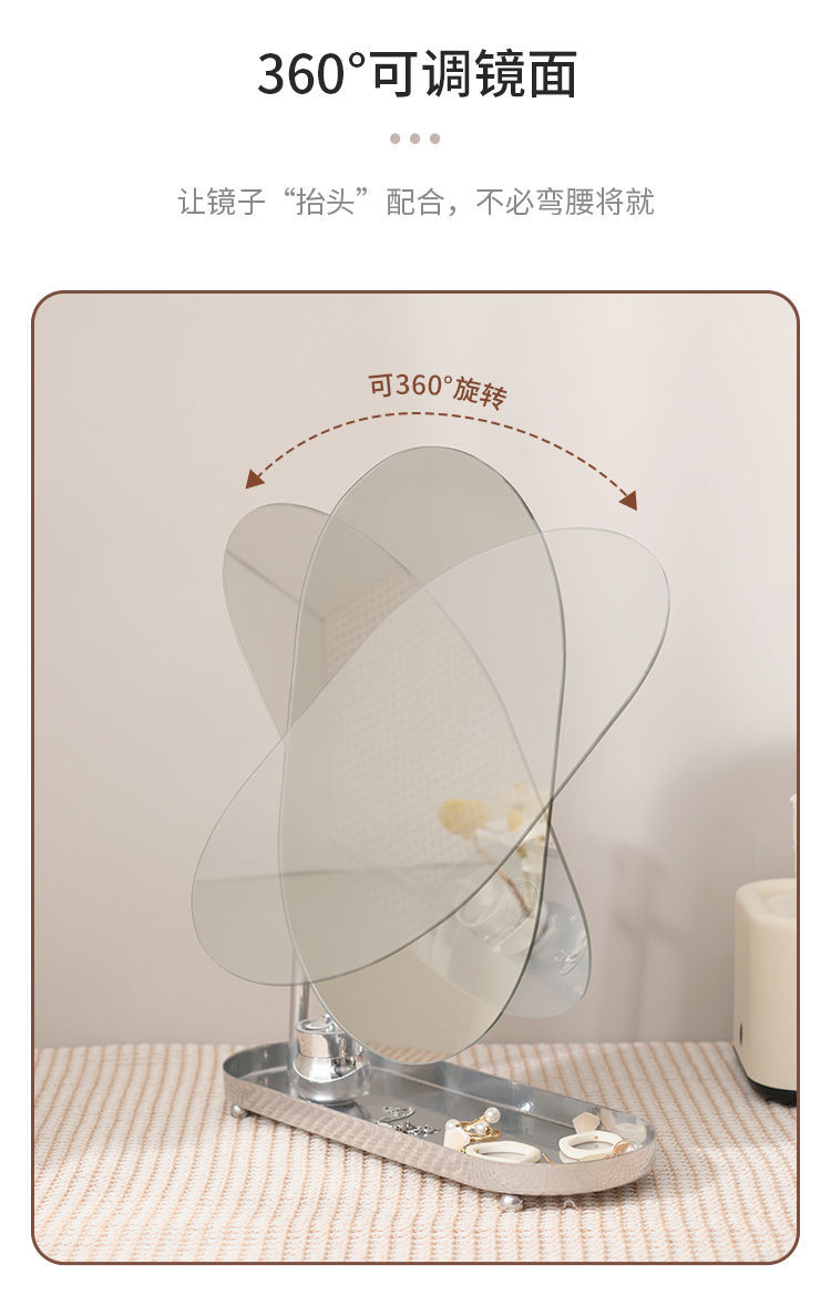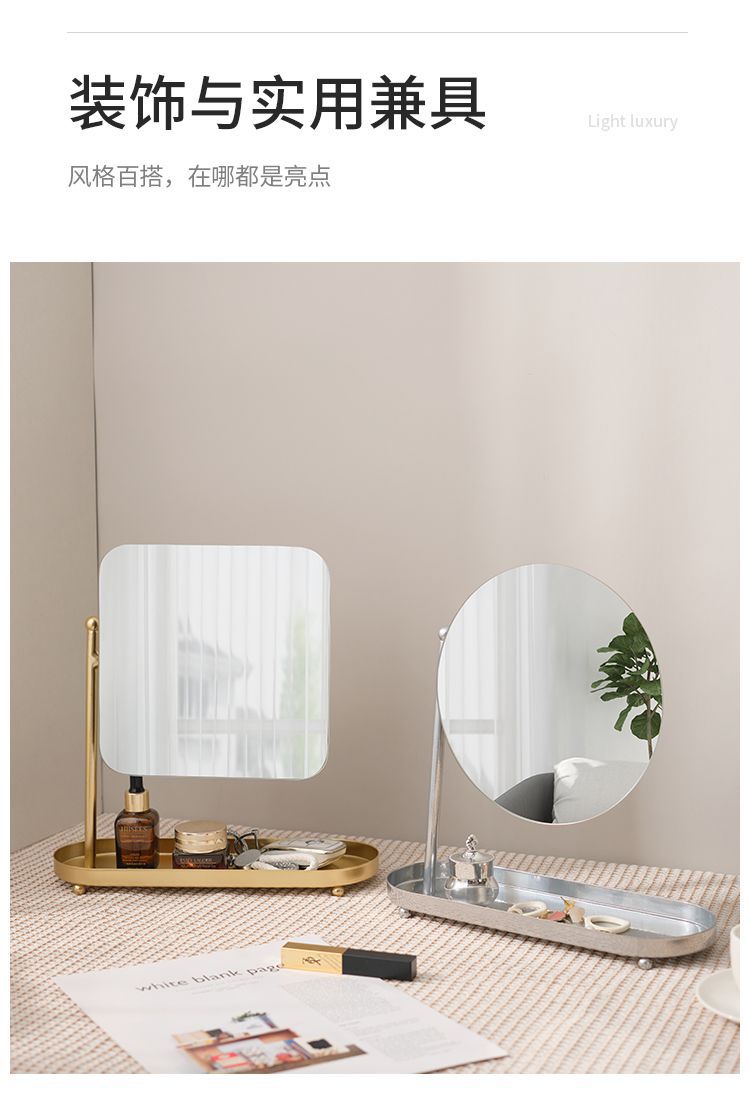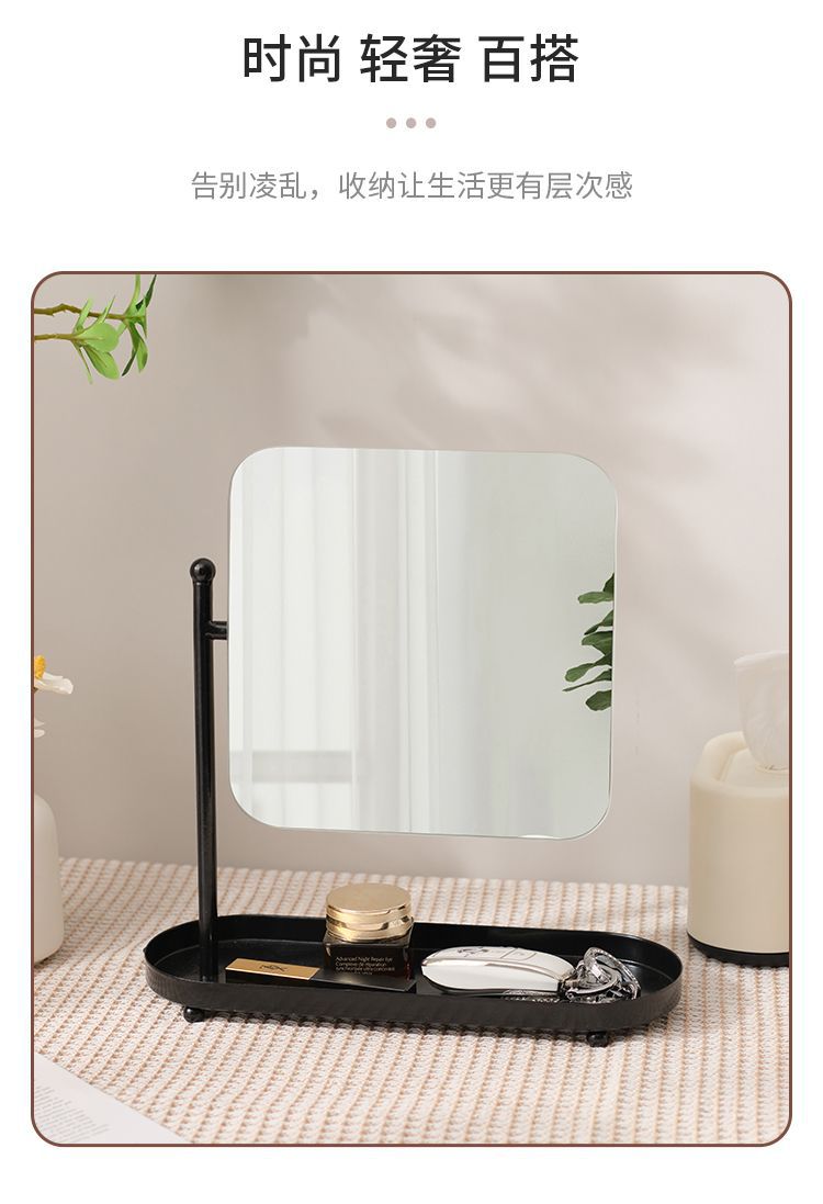 Desktop Makeup Mirror Storage Box Integrated For Home Bedroom Desktop Dressing Mirror Internet-Famous Dormitory Cosmetic Mirror Rotate Mirror