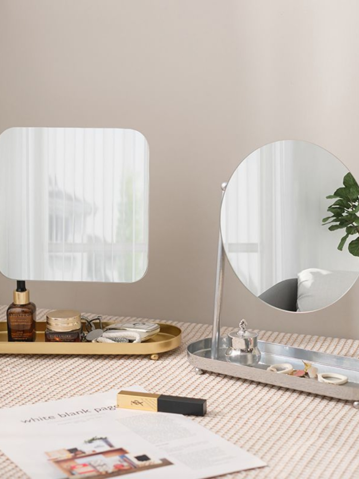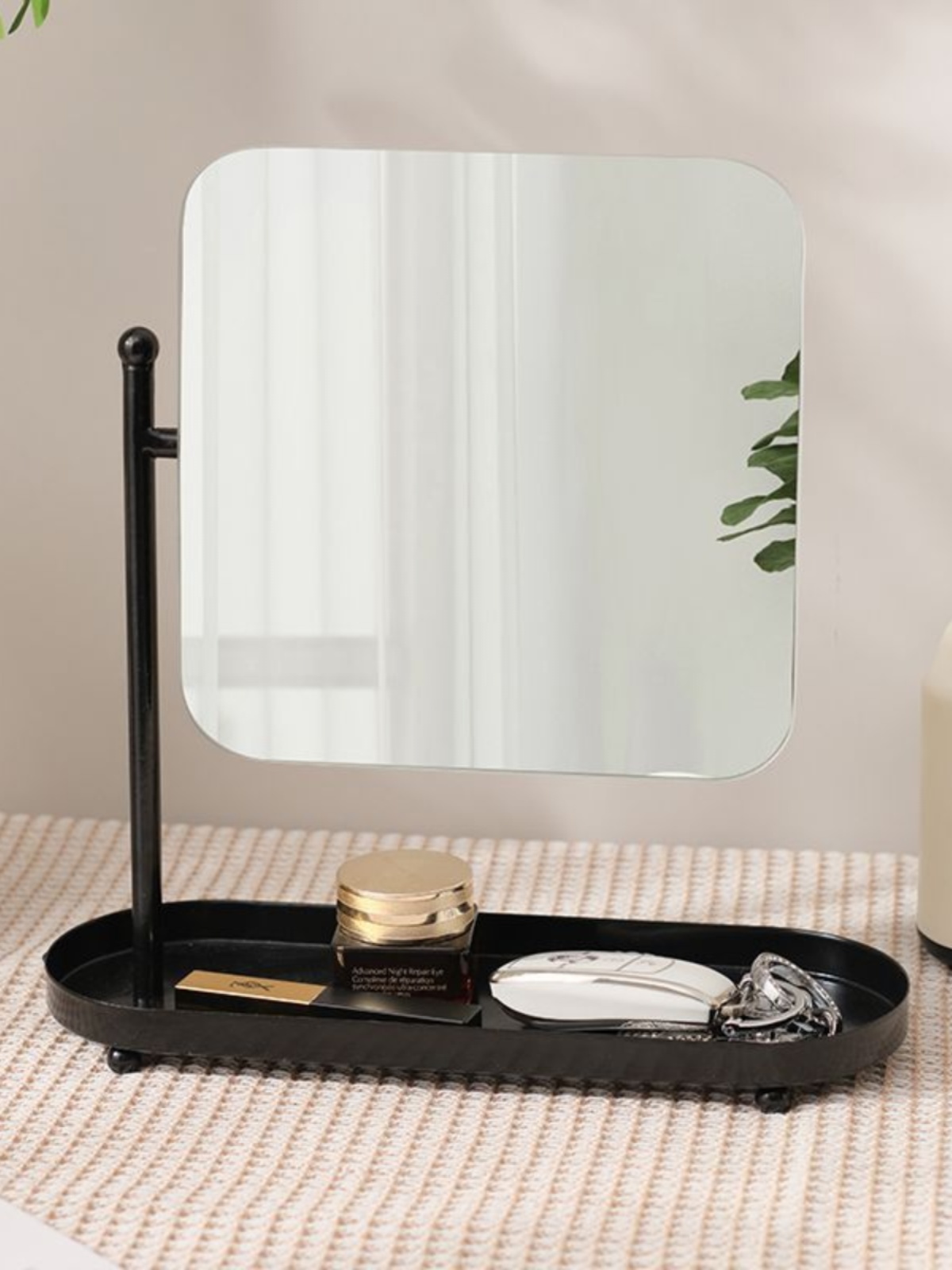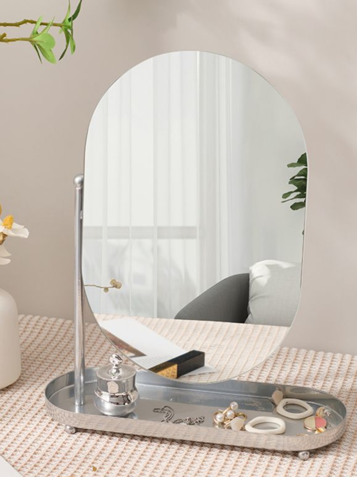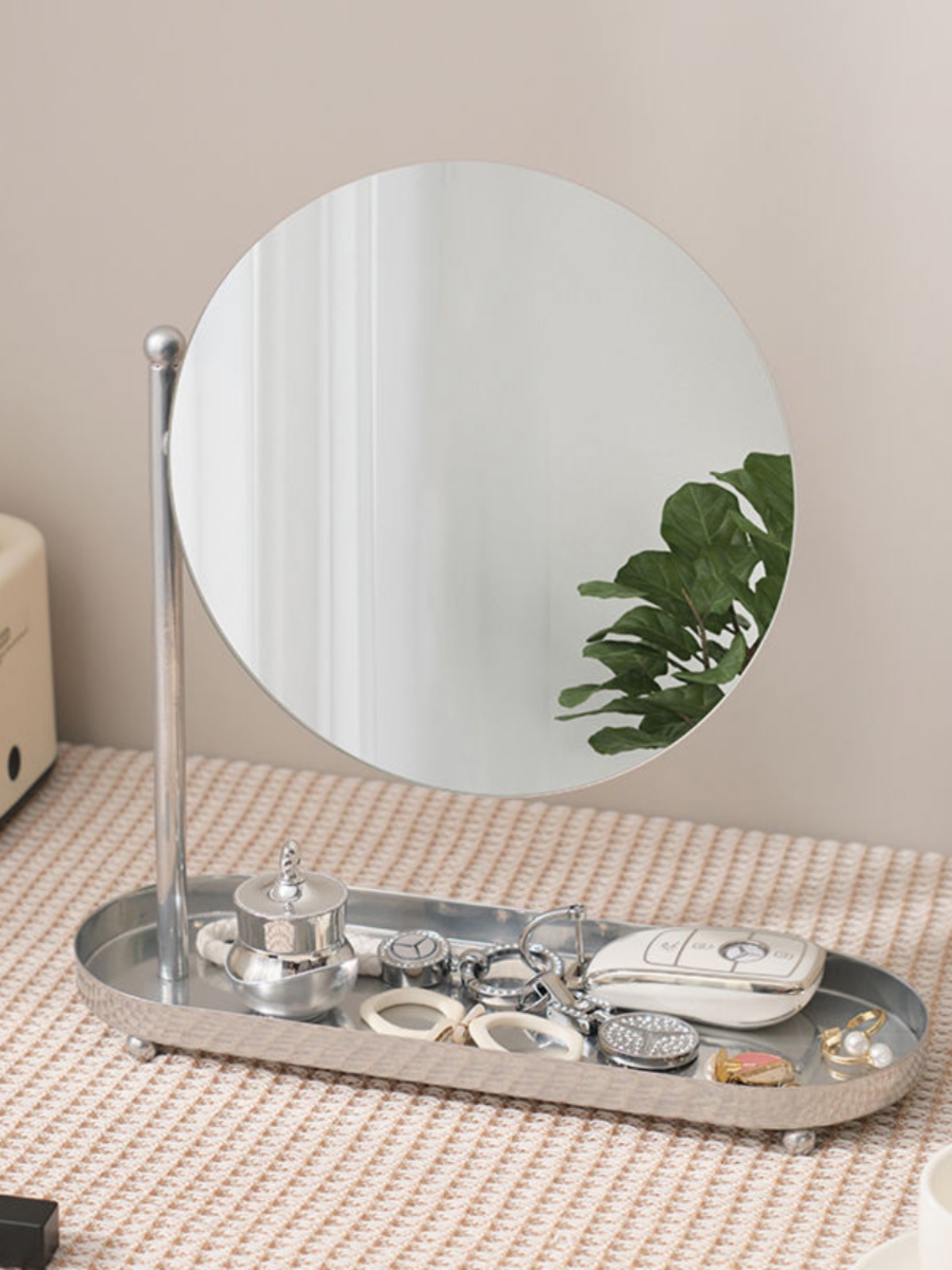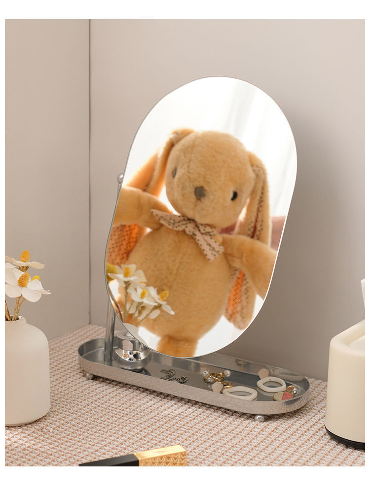Desktop Makeup Mirror Storage Box Integrated For Home Bedroom Desktop Dressing Mirror Internet-Famous Dormitory Cosmetic Mirror Rotate Mirror