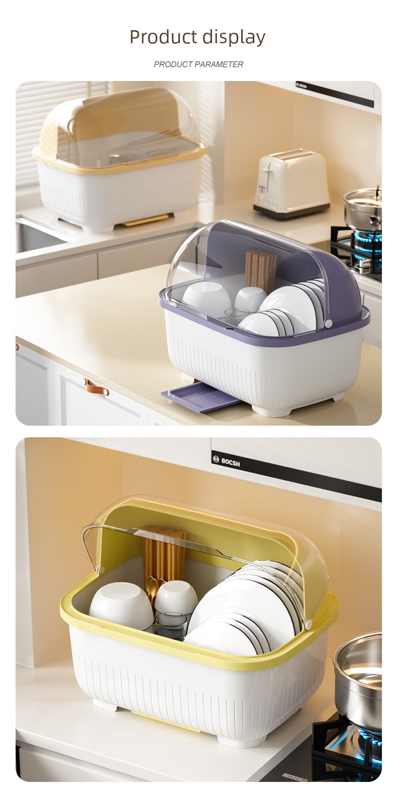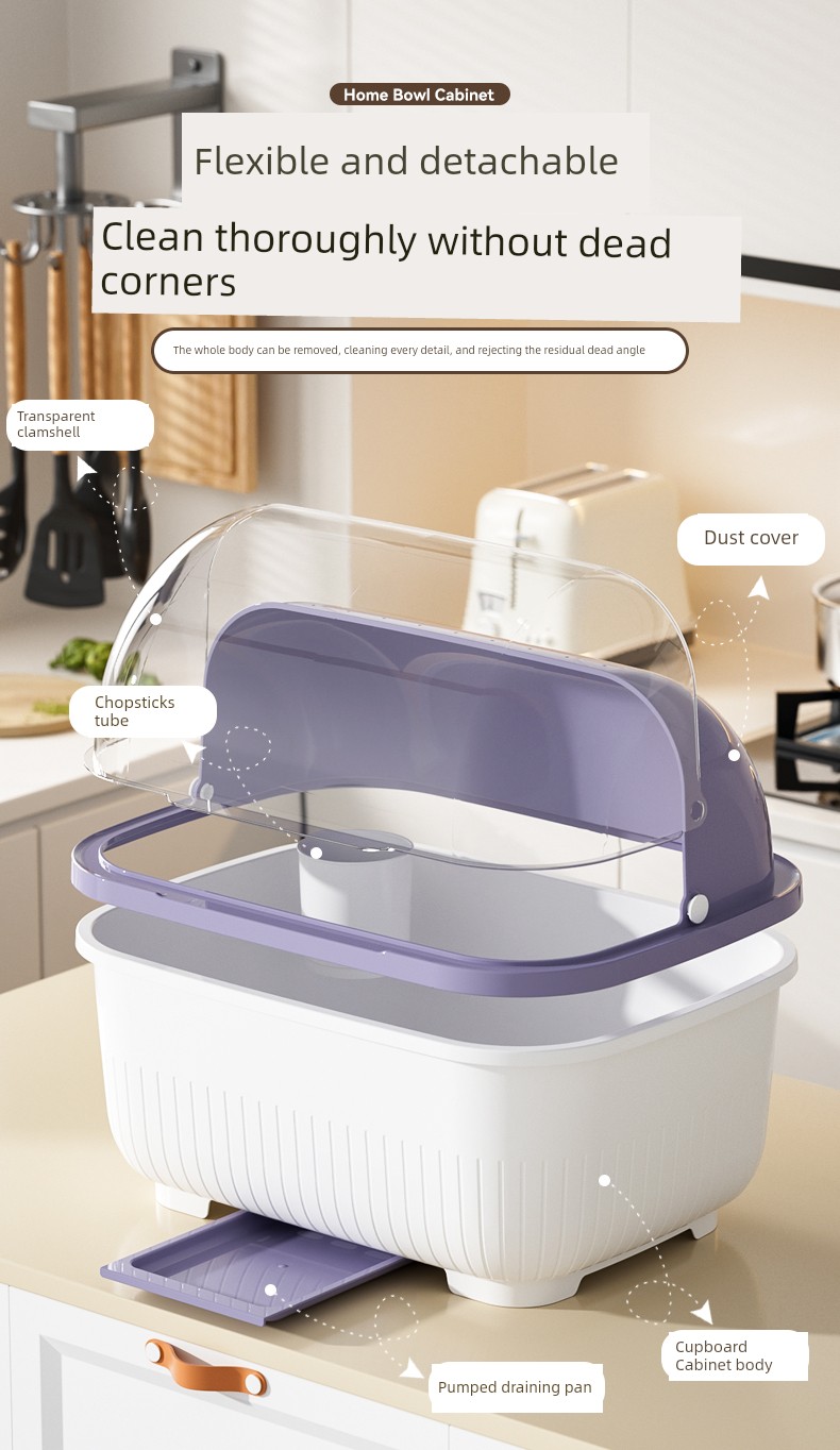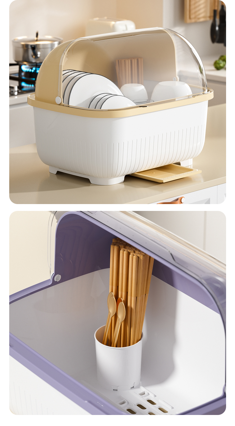 Dish Storage Rack Cupboard For Home Kitchen Table Top Draining Rack with Lid Cutlery Plate Tableware Storage Box