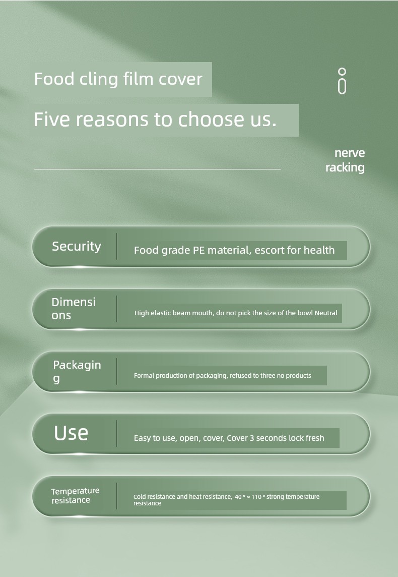 Disposable Plastic Wrap Mantle Cover Food Grade For Home Cover Insurance Leftovers Bowl Set Special Freshness Protection Package with Elastic