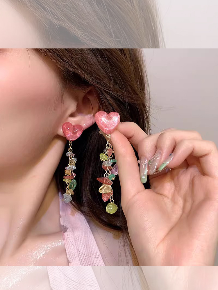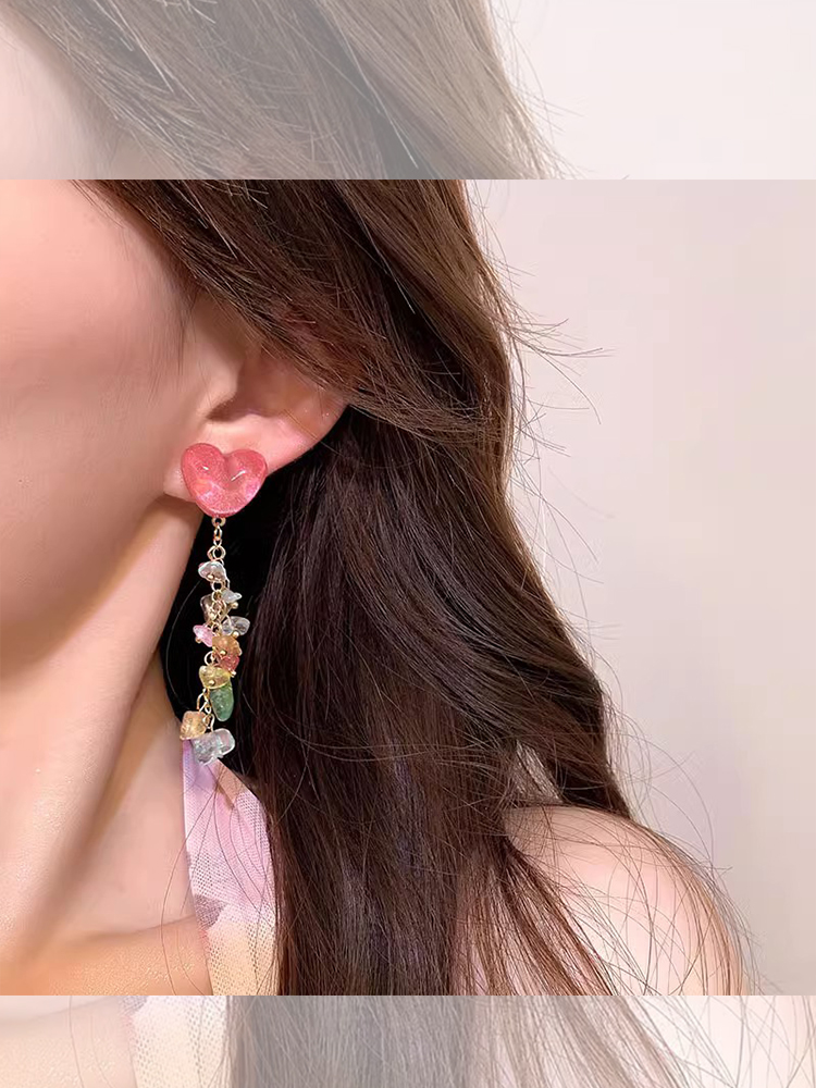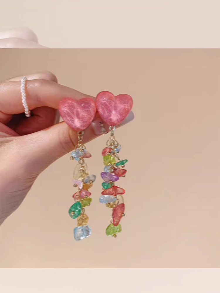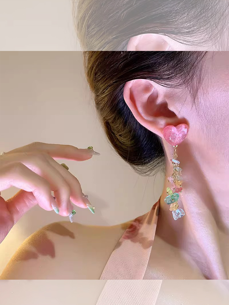 Dopamine Pink Heart Gravel Earrings for Women Niche Design Fancy Earrings 2023 New Arrival Trendy Earrings