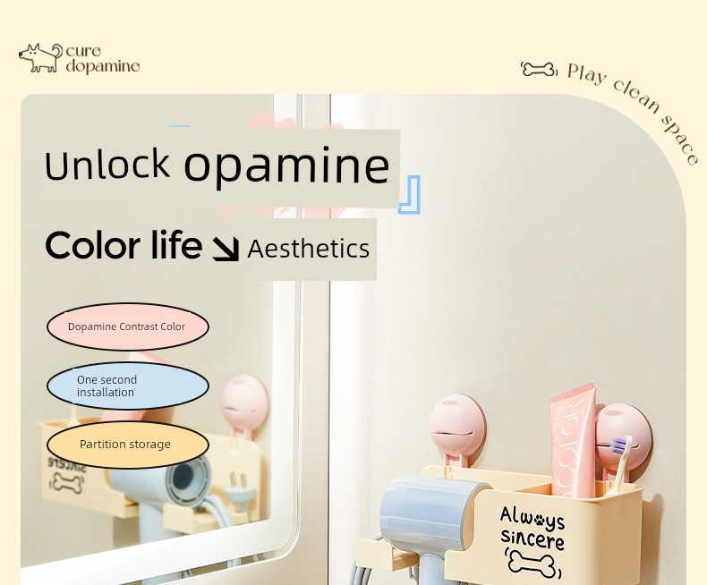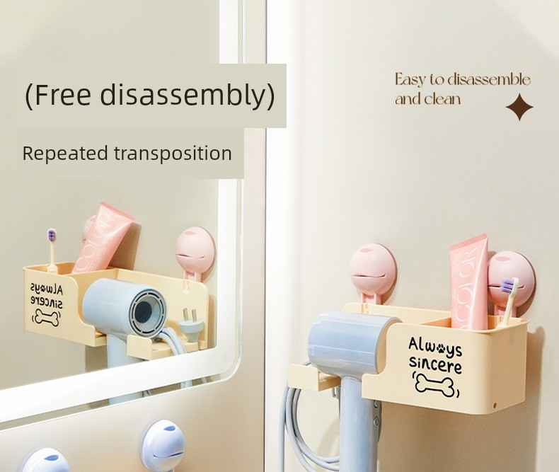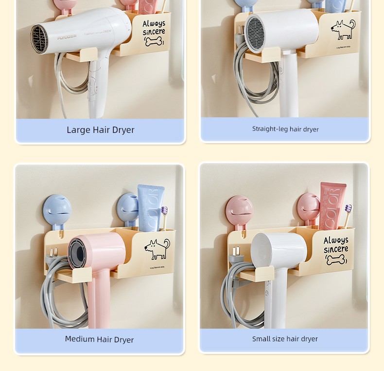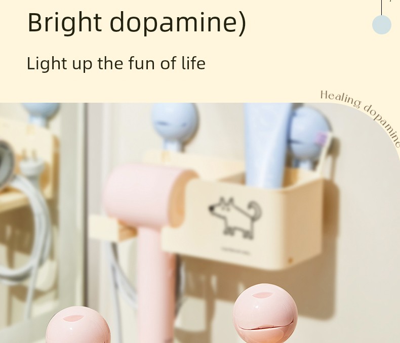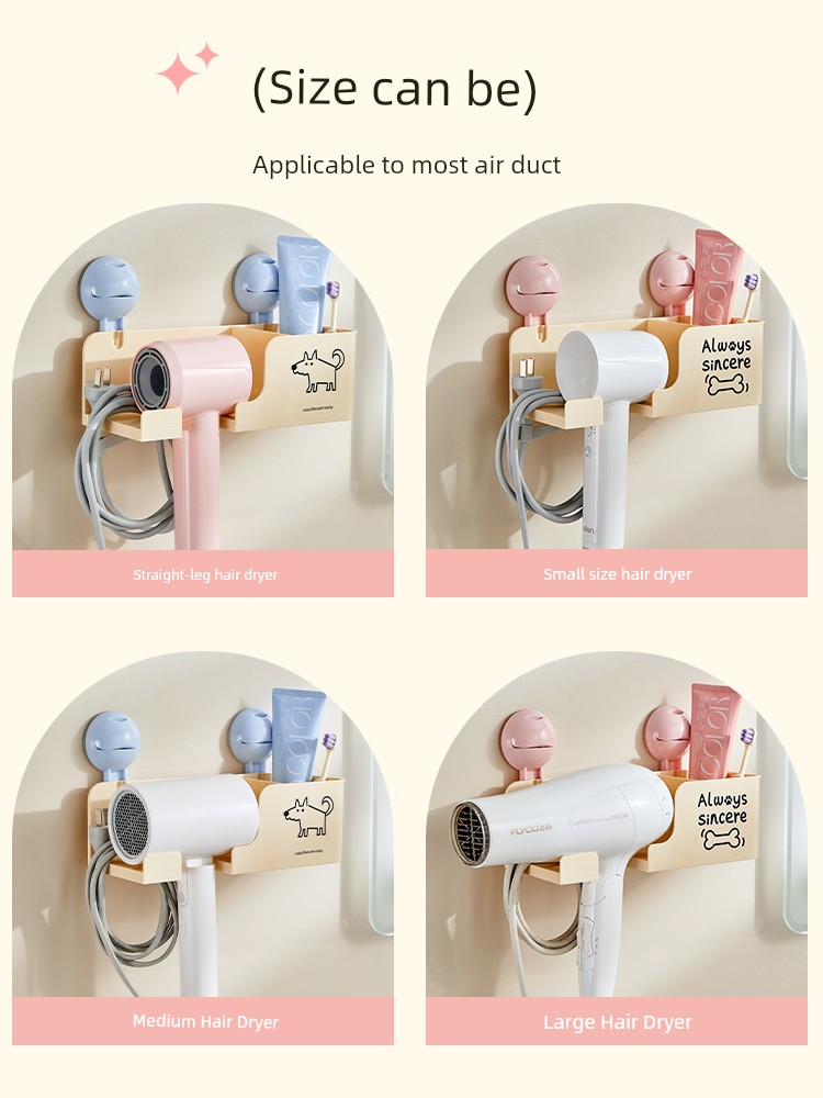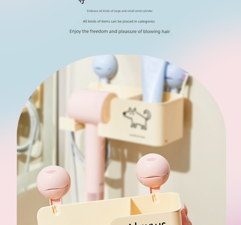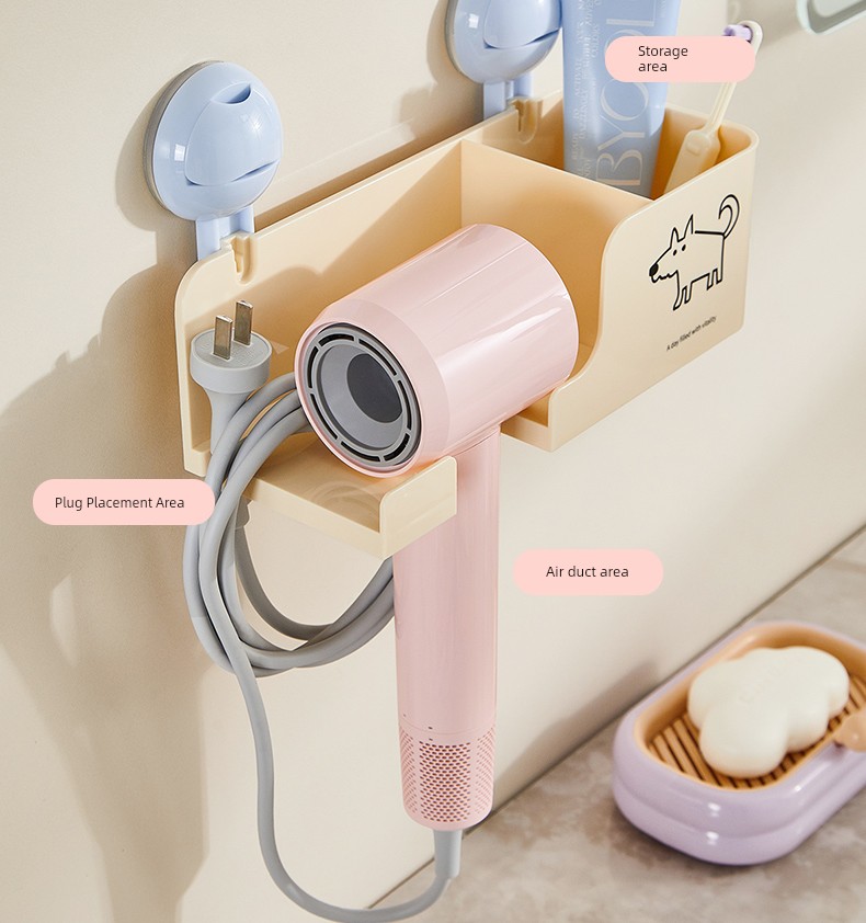 Dopamine Suction Cup Hair Dryer Storage Rack Punch-Free Bathroom Rack Wall-Mounted Hair Dryer Bracket Storage Fantastic