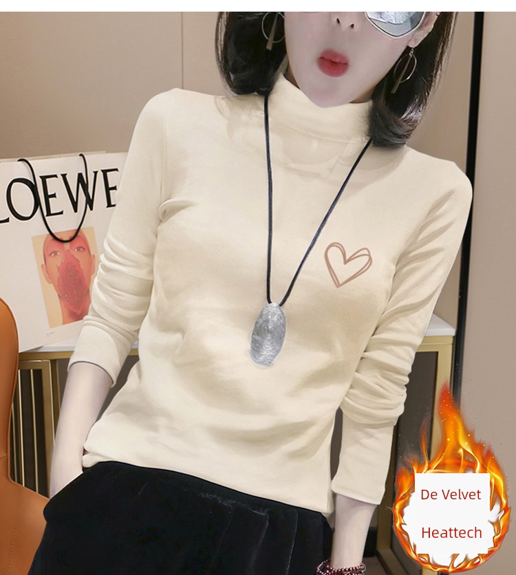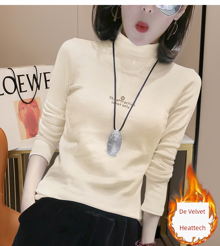 Double-Sided Dralon Half Turtleneck Bottoming Shirt Women's Autumn and Winter Inner Wear 2025 New Arrival Fleece Lined Sanded Long Sleeves T-Shirt Tops