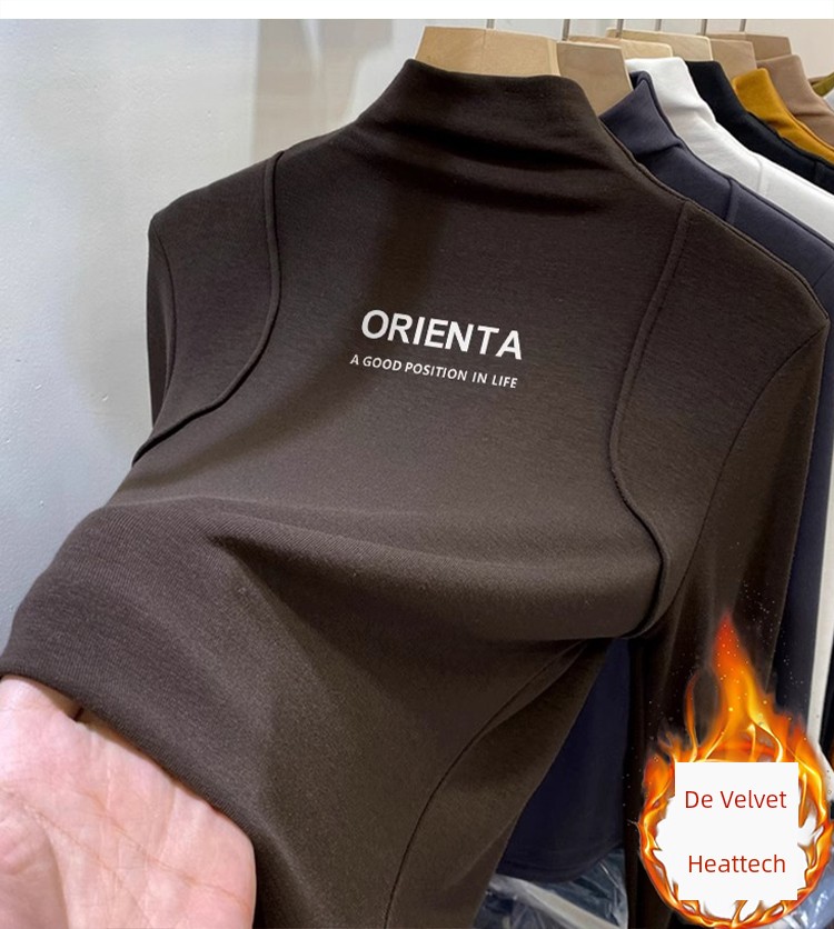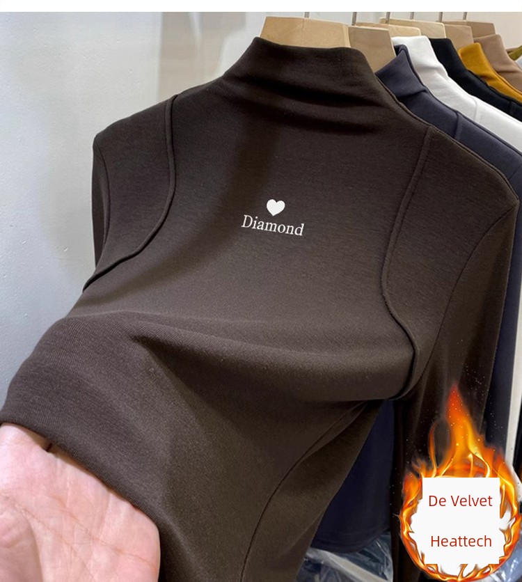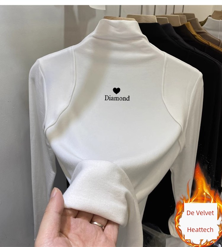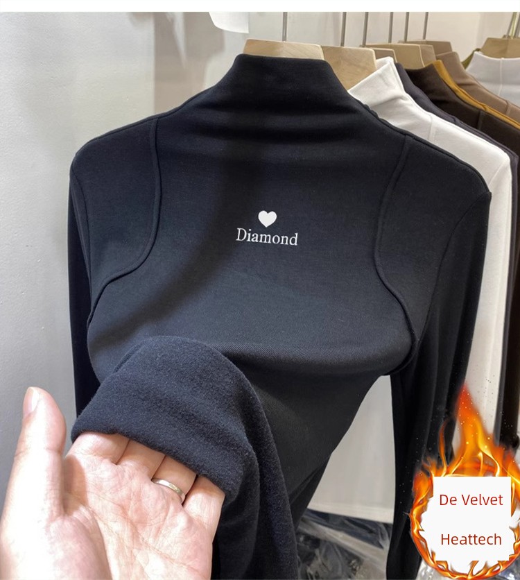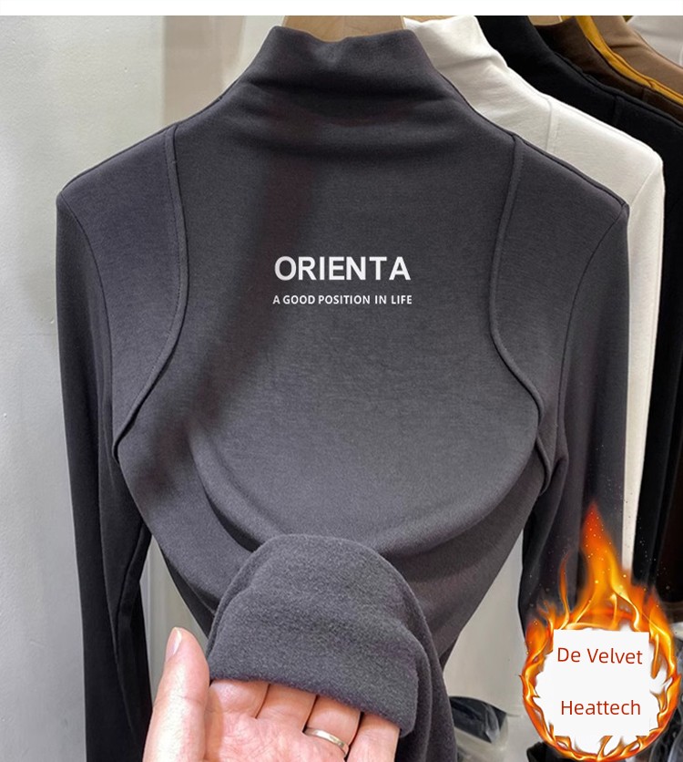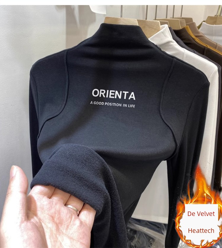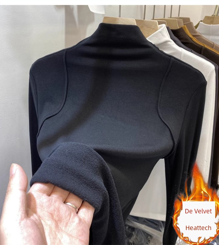 Double-Sided Dralon Half Turtleneck Bottoming Shirt Women's Fleece-lined Thickened Mid-Collar Inner Shoulder Long Sleeves T-Shirt Women's Heattech Tops