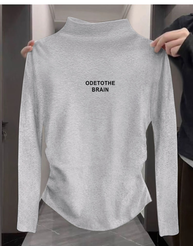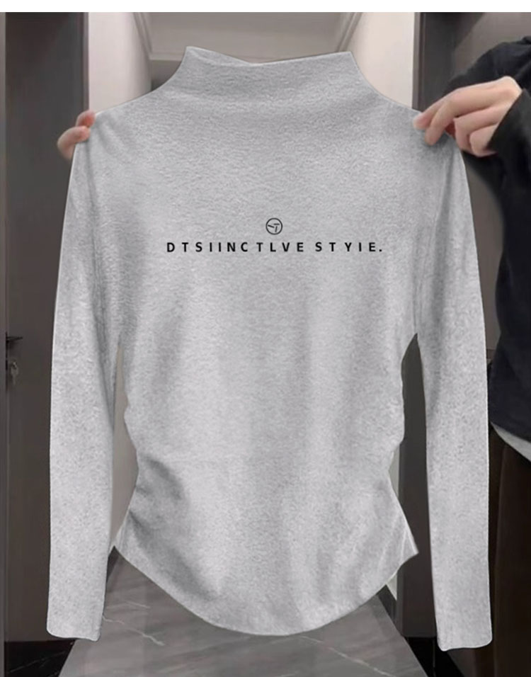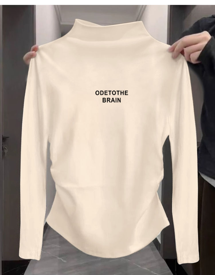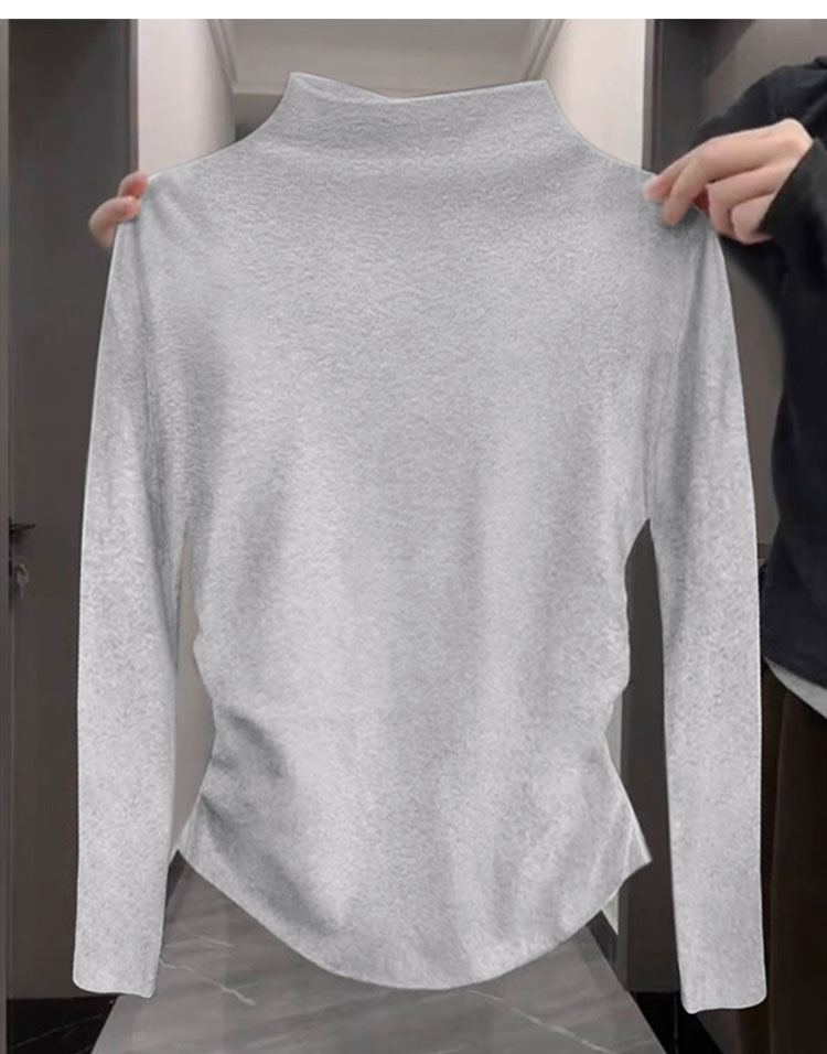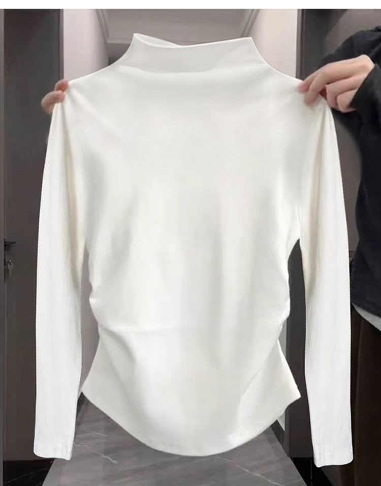 Women's Autumn/Winter New Pleated Slim Fit Half-High Collar White Base Shirt