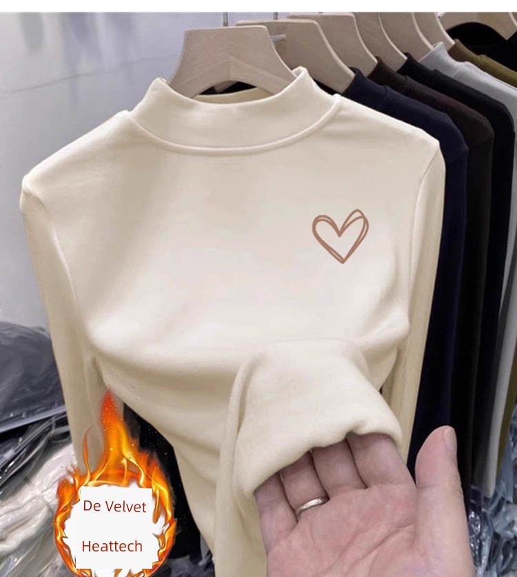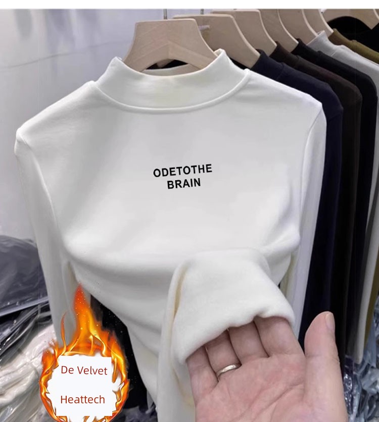 Double-Sided Dralon Warm Long Sleeve T-shirt Bottoming Shirt Women's Autumn and Winter New Arrival Silm Fashionable Fleece-Lined Half Collar Top
