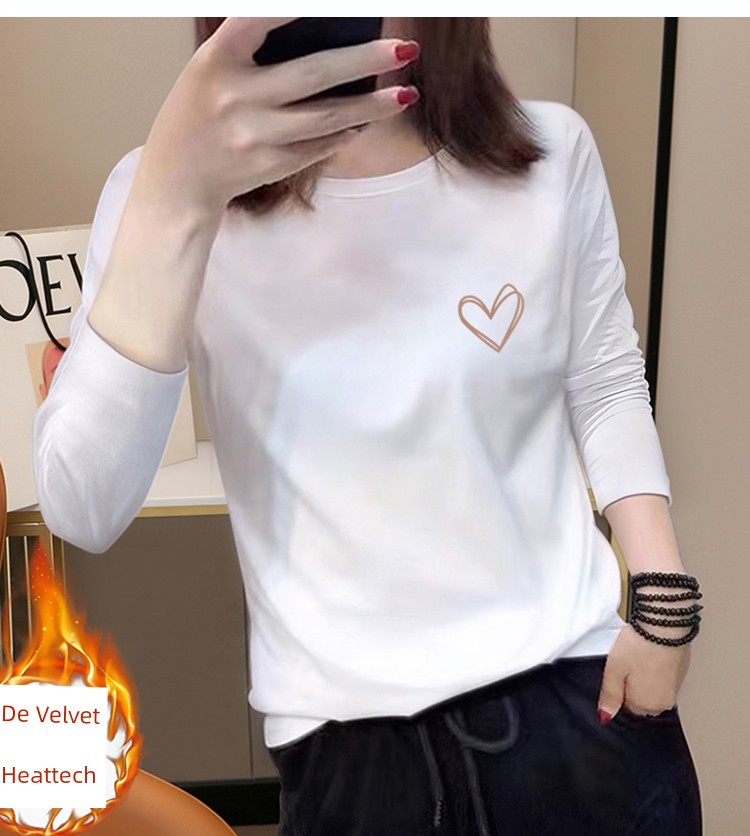 Dralon Bottoming Shirt for Women Fleece-lined Thickened Fall and Winter Western Style All-Matching Long Sleeve Inner Wear Heattech Tops Silm Brushed T-Shirt
