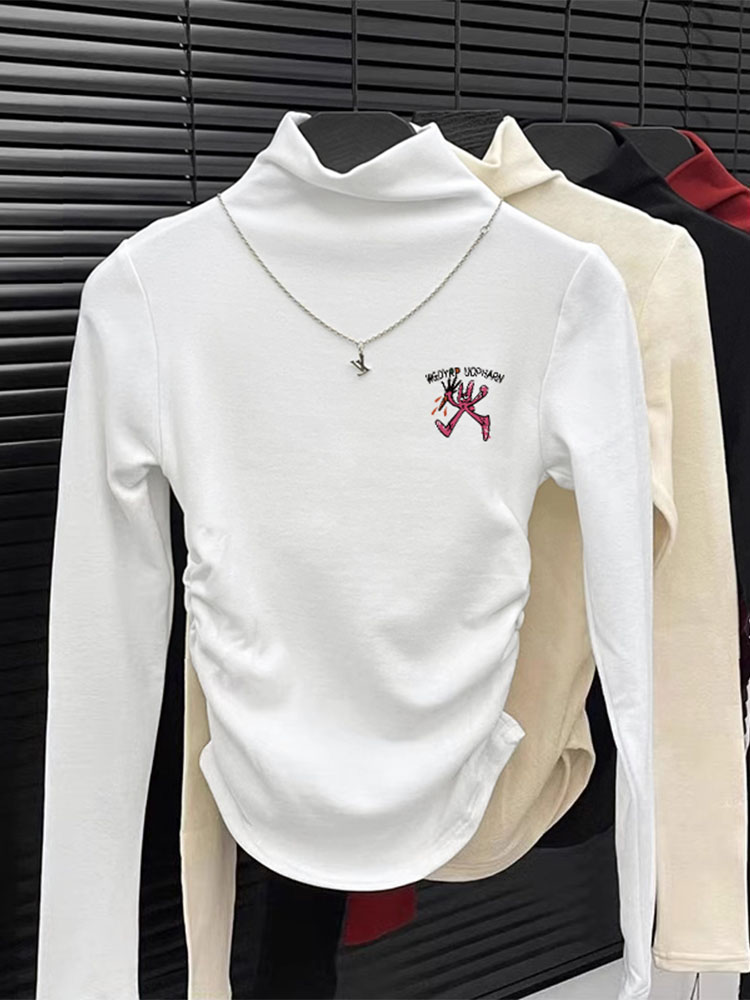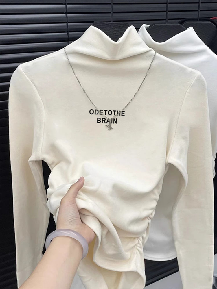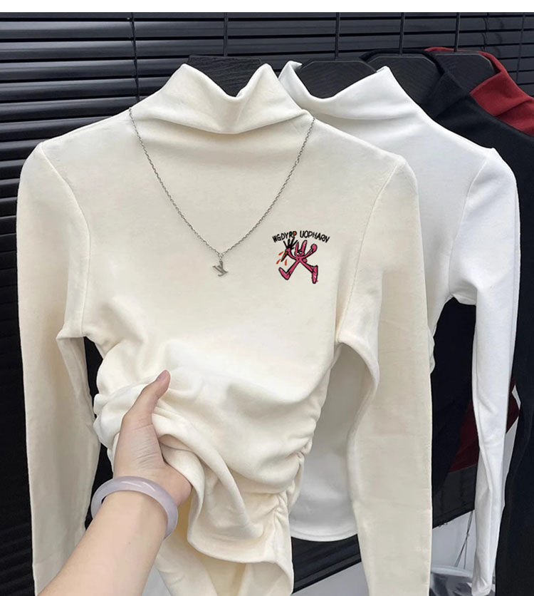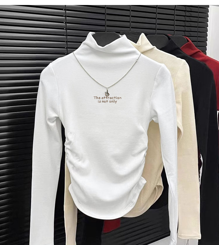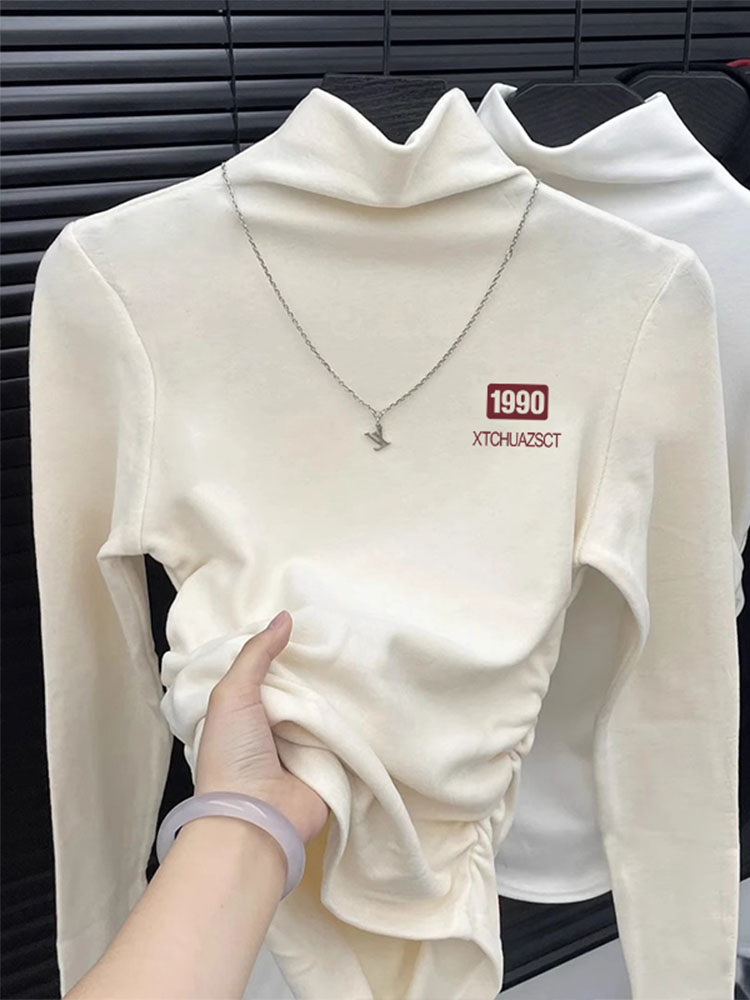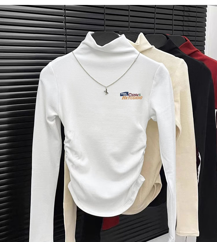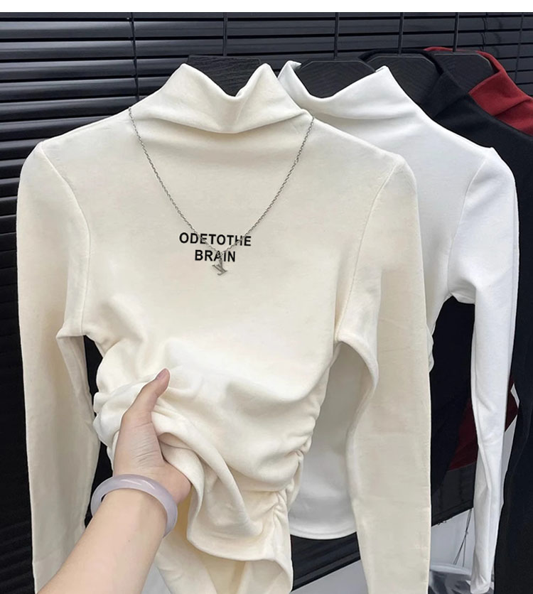 Autumn/Winter Thickened Warm Half-high Collar Slim Fit Base Shirt, Fashionable Pleated Short Inner Wear