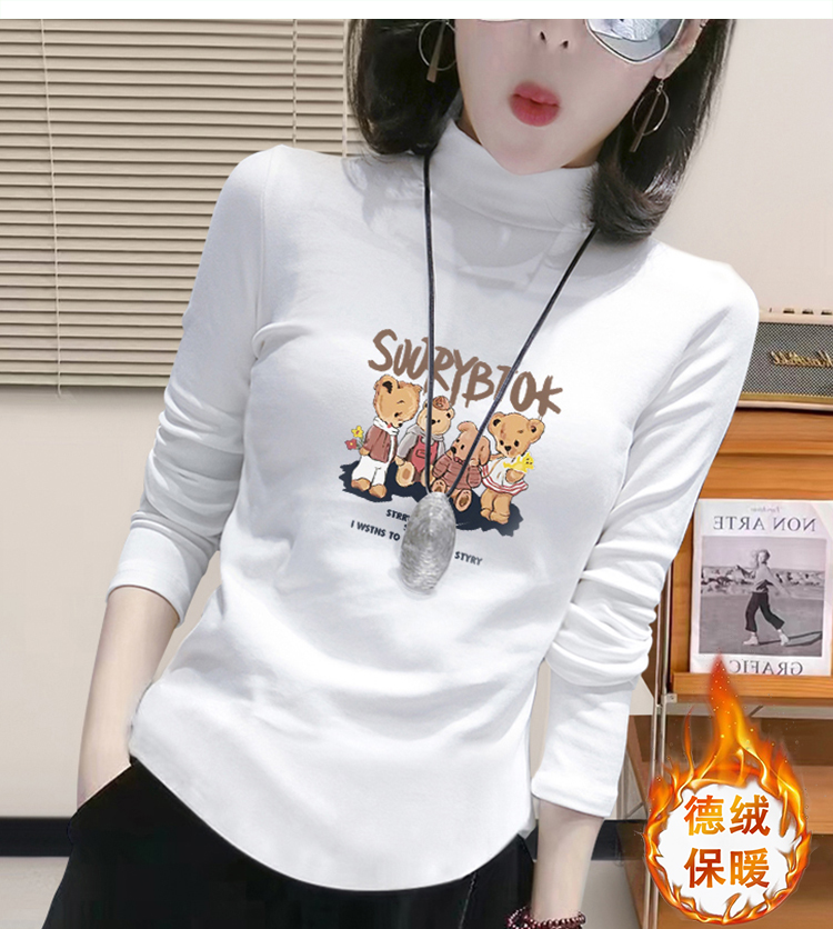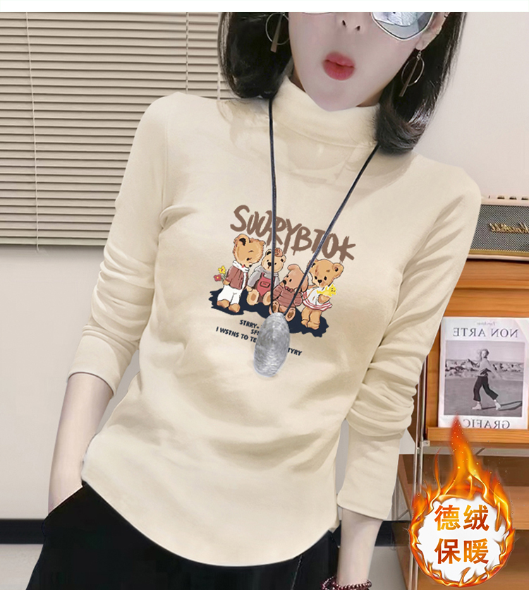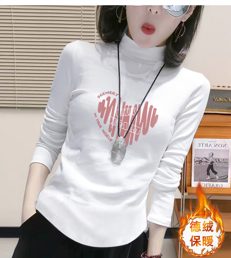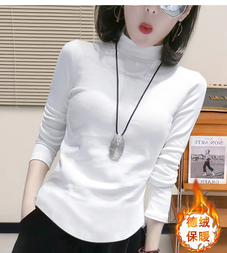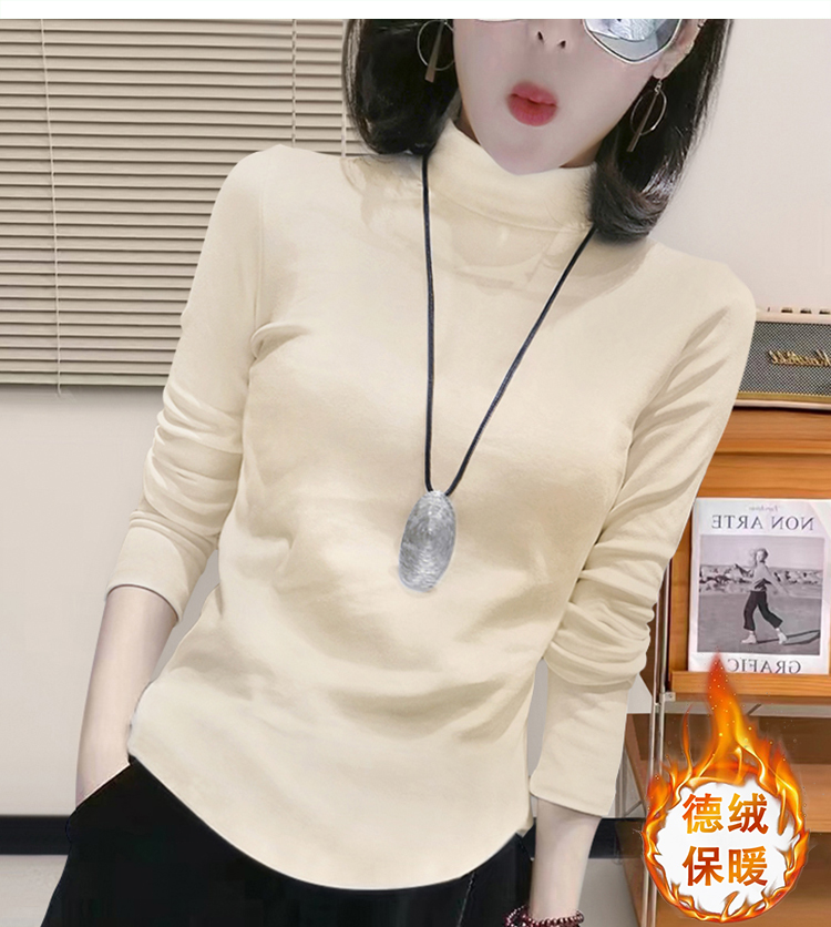 Dralon Half-High Collar Long Sleeves T-Shirt Women's Top Curved Hem Shoulder Fleece-lined Heattech Inner Bottoming Shirt Fall and Winter