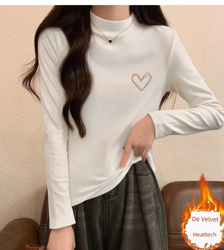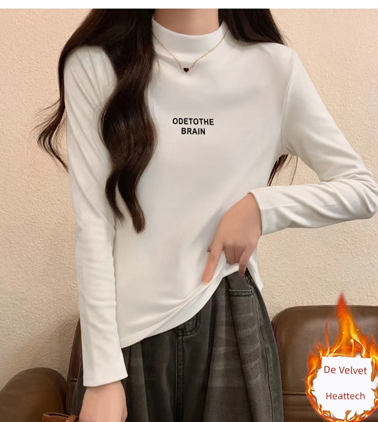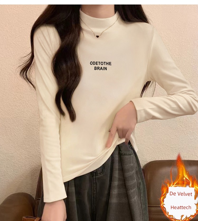 Dralon Half Turtleneck Bottoming Shirt Women's Autumn and Winter Inner Wear Mid-Collar Top Fashionable Fleece-Lined Thickened Warm Long Sleeve T-shirt