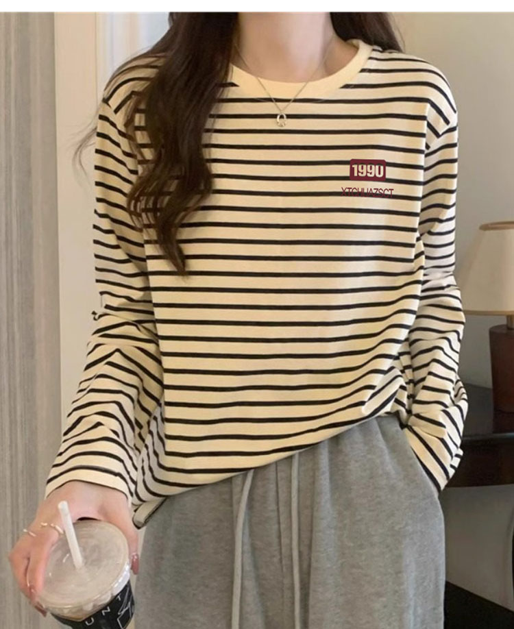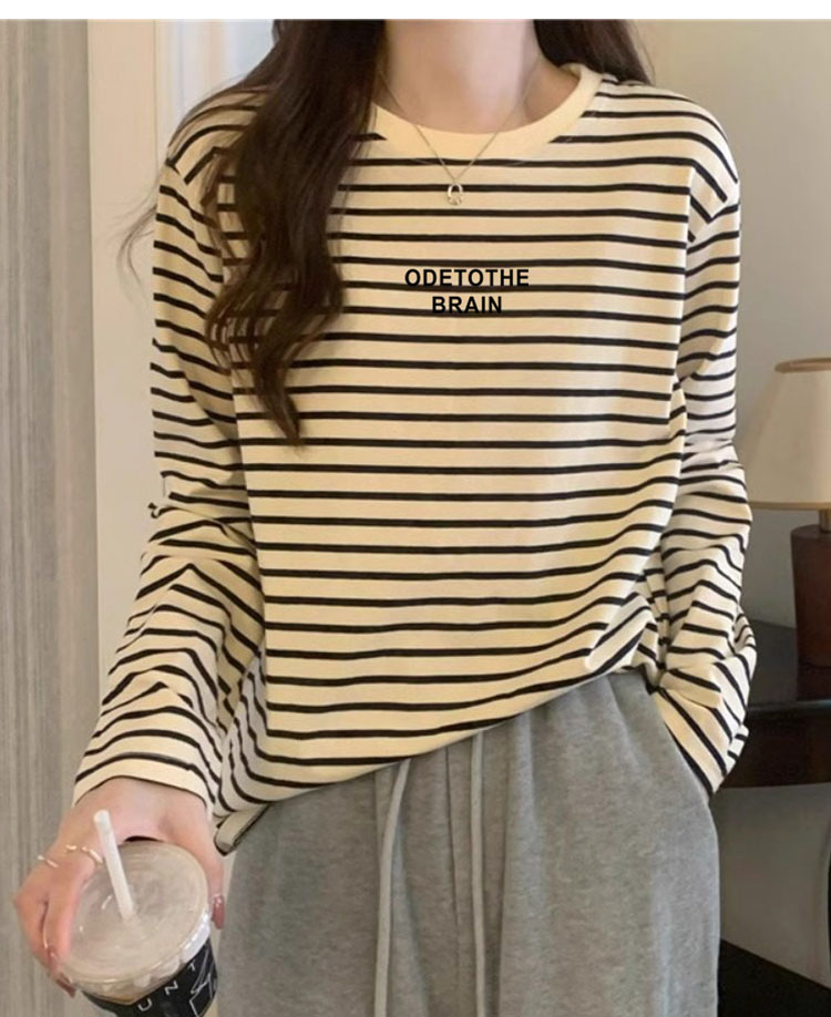 Dralon Stripes Shoulder Long Sleeves T-Shirt Women 2025 Spring & Fall New round Neck Thickened Inner Wear Horizontal Stripe Bottoming Shirt Tops