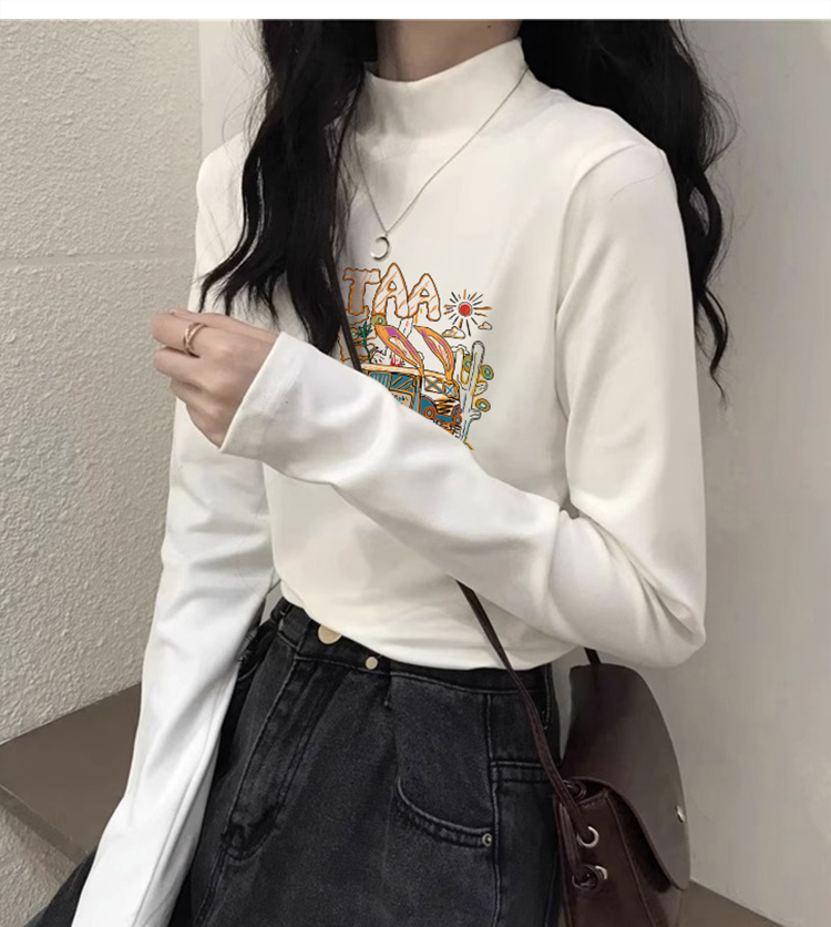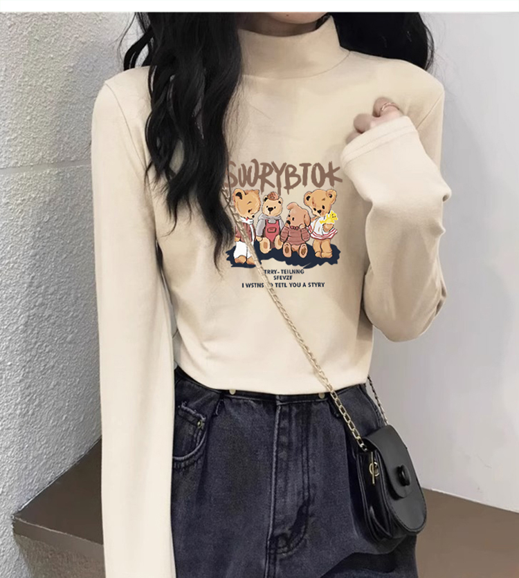 Dralon Thickened Half-High Collar Cream Color T-Shirt Female Fall and Winter 2025 New Arrival Inner Bottoming Shirt Slim Long Sleeve Top