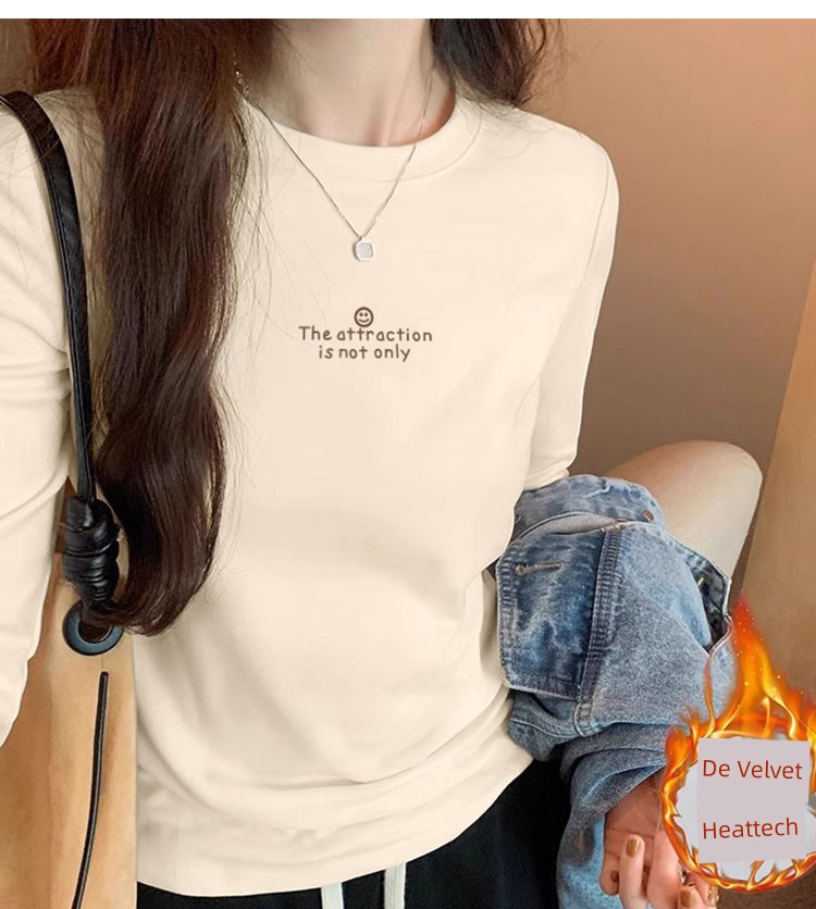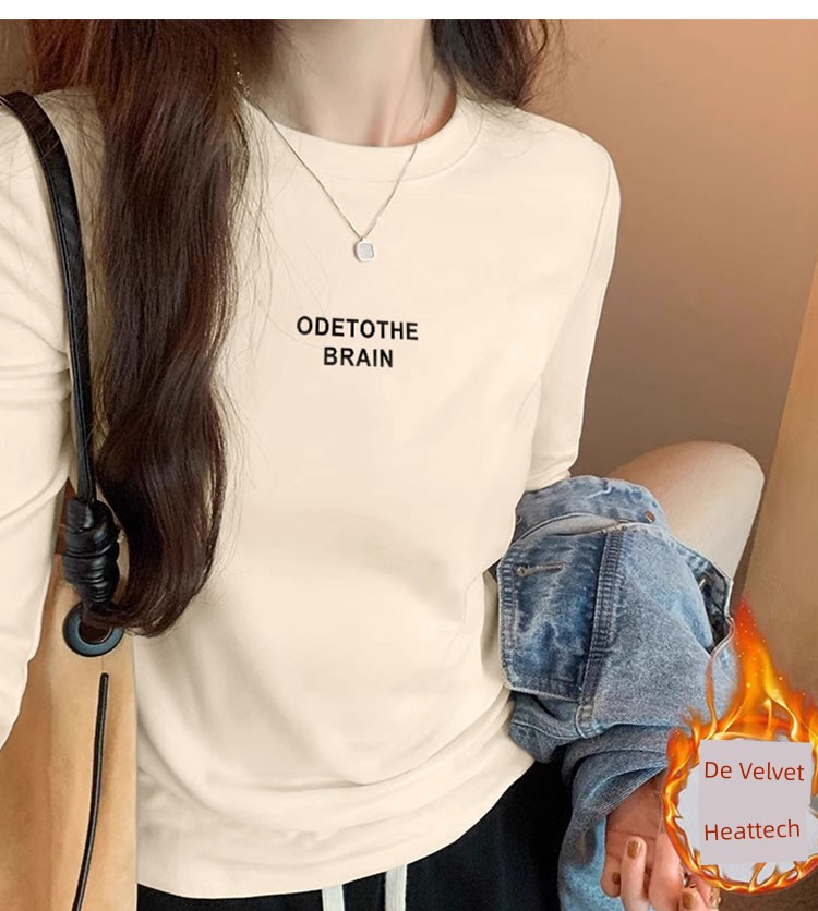 Dralon Thickened Long Sleeves T-Shirt Women's Autumn and Winter Undershirt New Arrival Slimming Inner Stylish Niche Style Short Tops