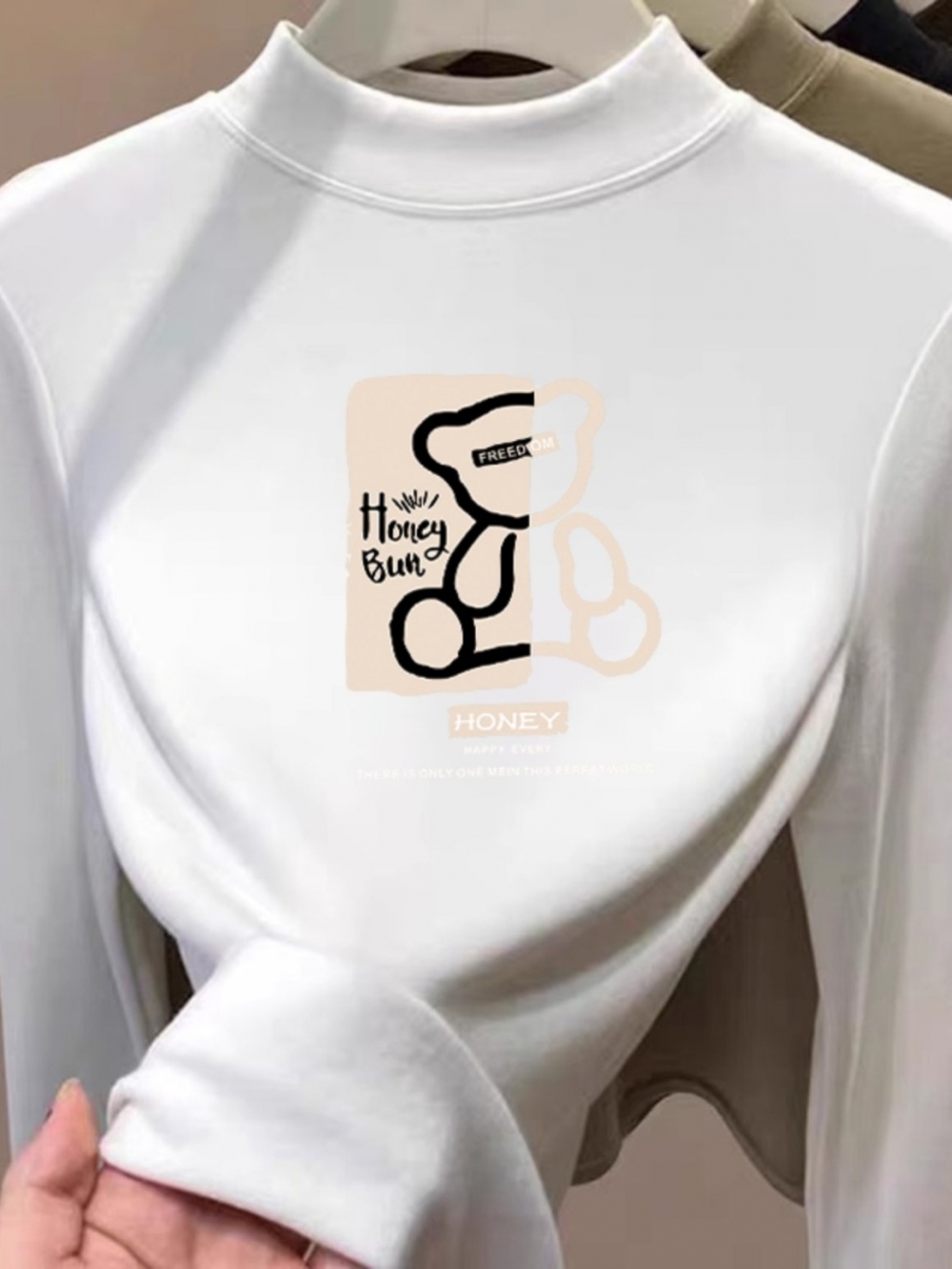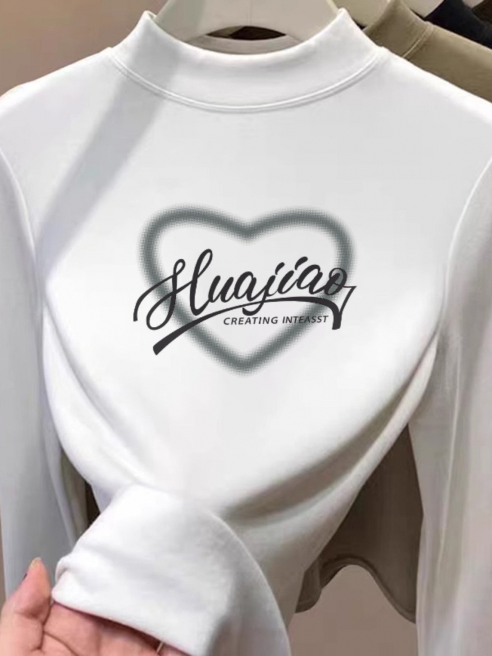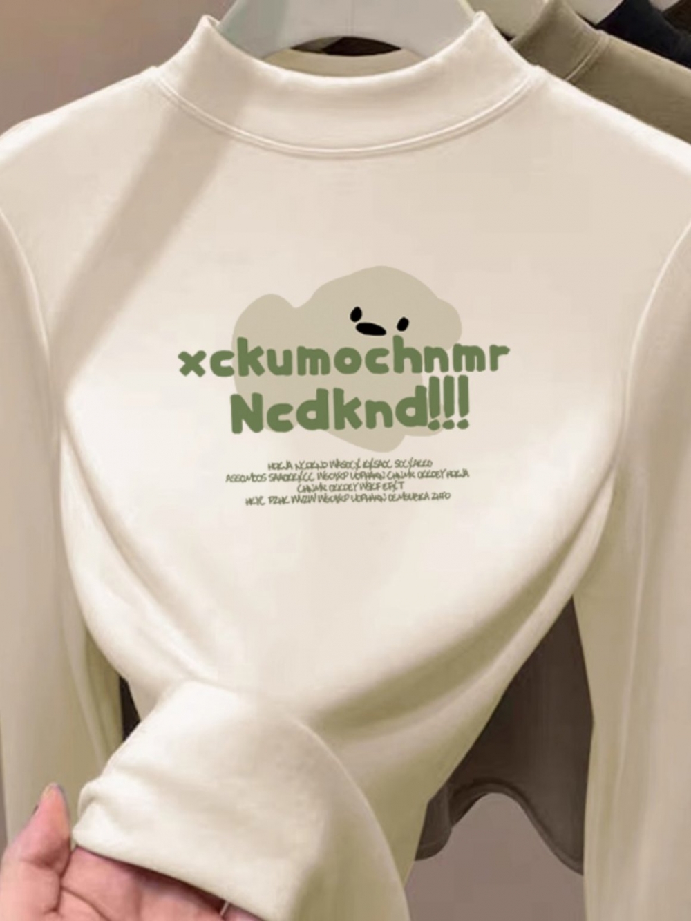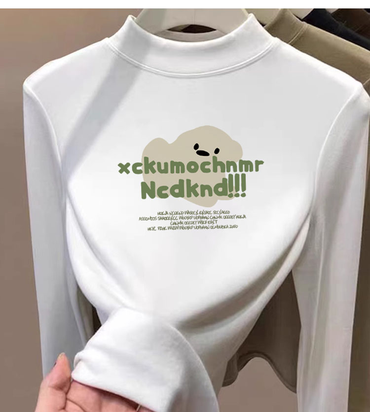 Dralon Thickened Warm Coat Bottoming Shirt for Women Fall and Winter New Arrival Slim Youthful Half Turtleneck Shoulder Long Sleeves T-Shirt Women