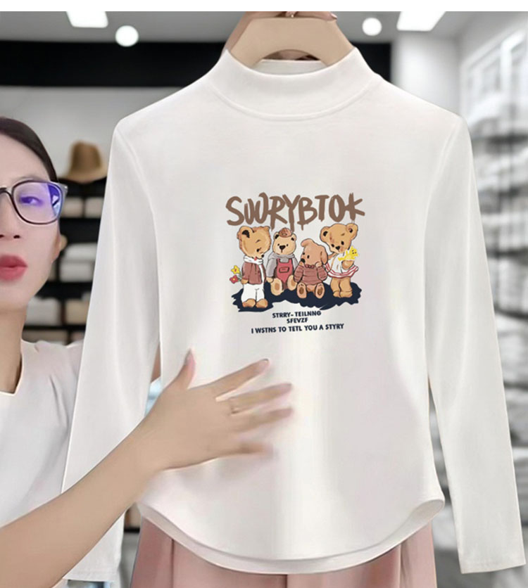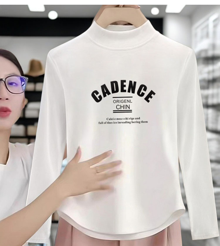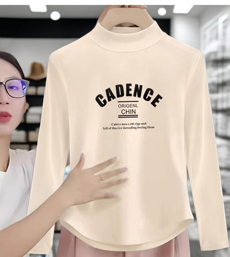 Dralon Warm Long Sleeve T-shirt Bottoming Shirt Women's Autumn and Winter New Arrival Western Style Slim Fit Shoulder Fleece-lined Half Collar Top