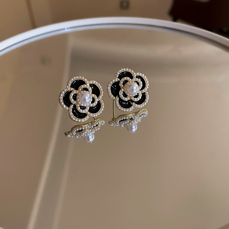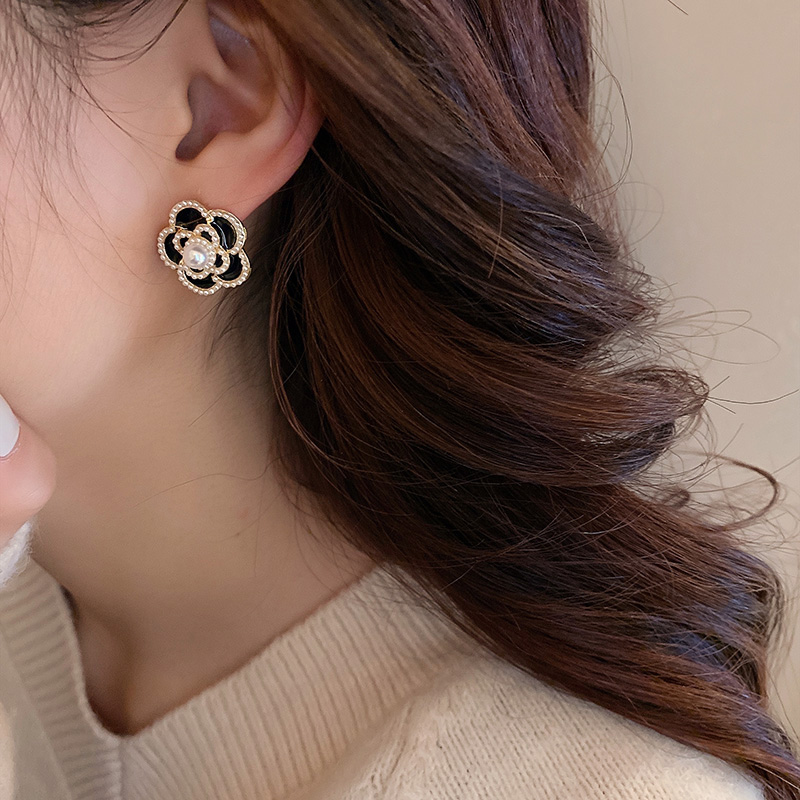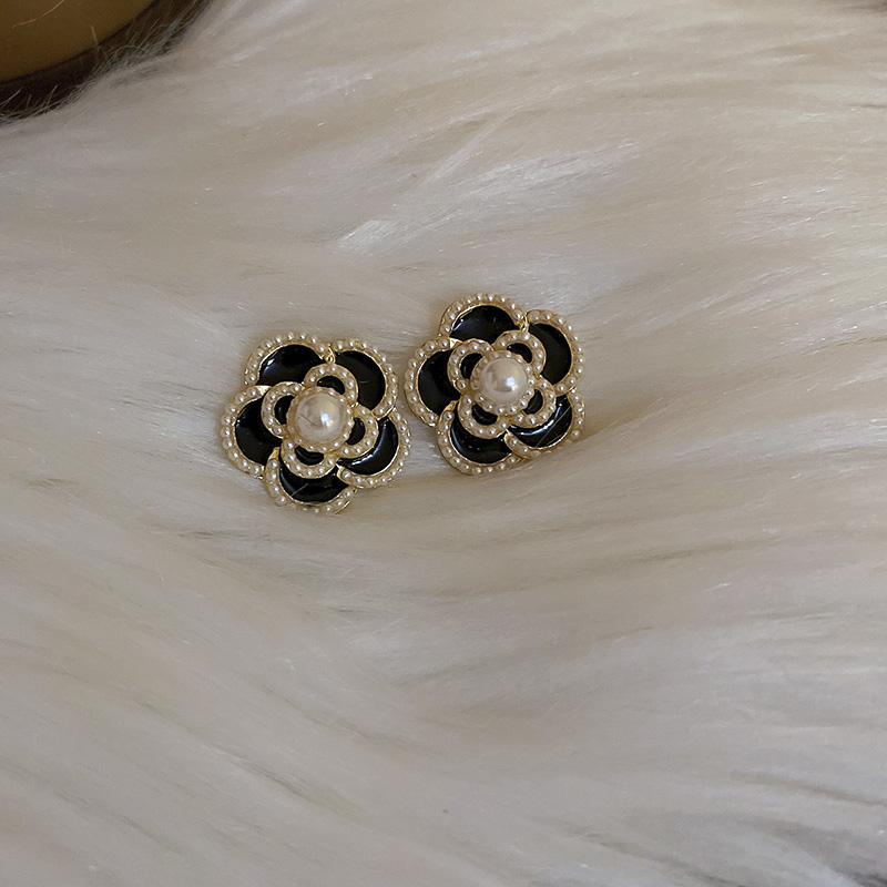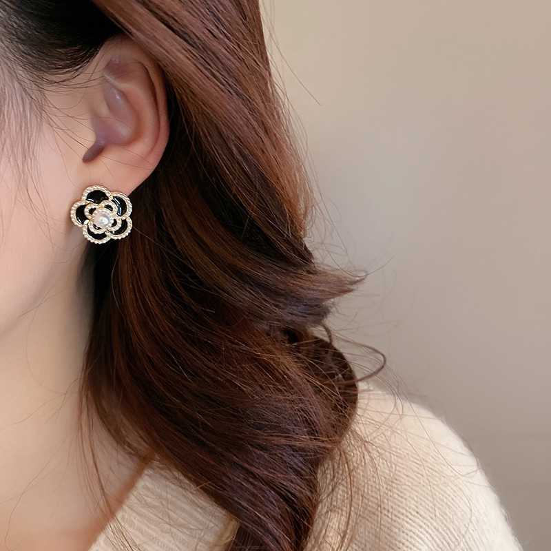 Drejew Pearl Camellia Earrings French Style Classic Style Retro Design Ear Studs Sweet Elegance Online Influencer Earrings