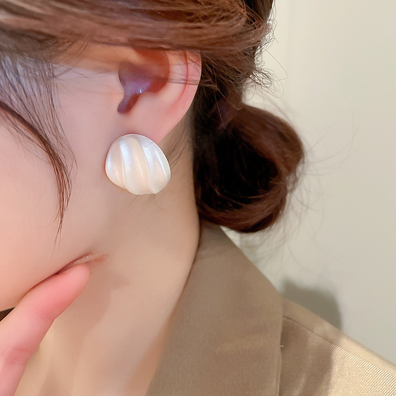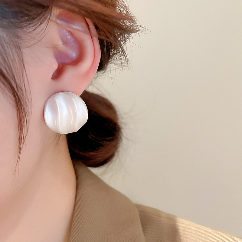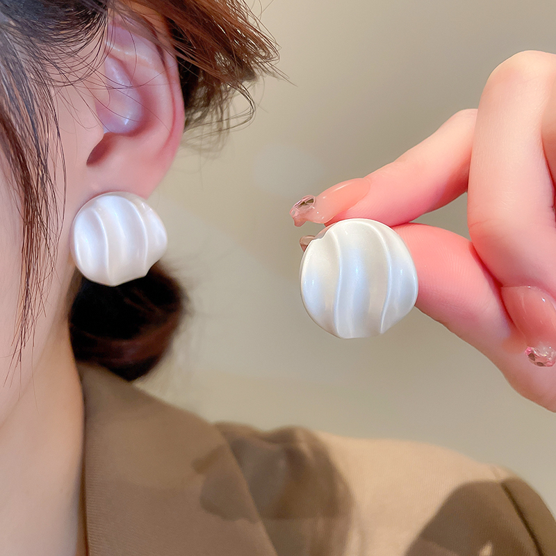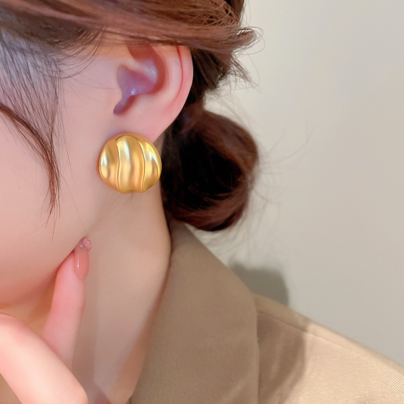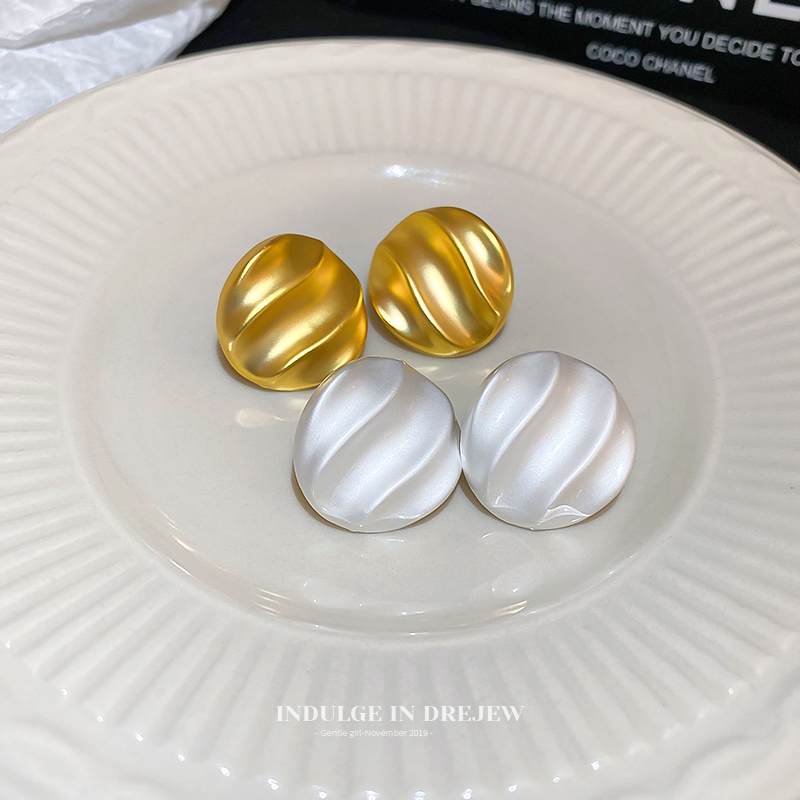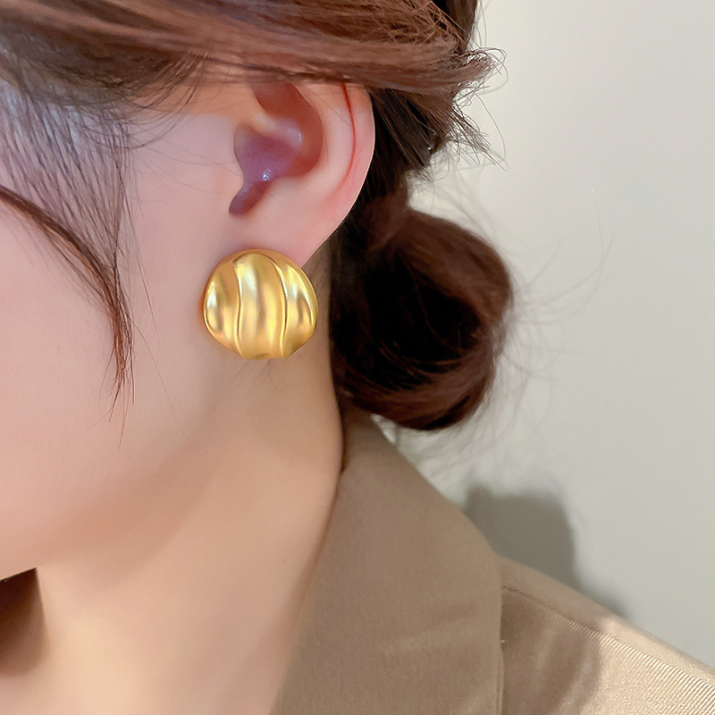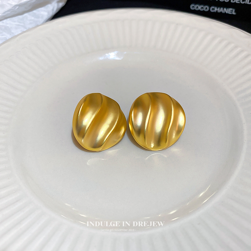 Drejew Ruched Pattern Circle Ear Studs Women's Summer Middle Ancient Fancy Unique Earrings Elegant Unique Earrings