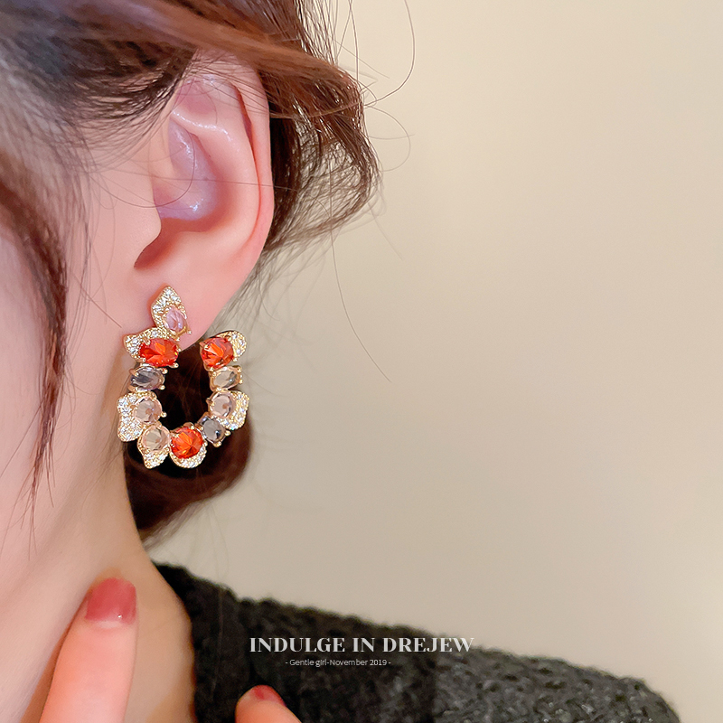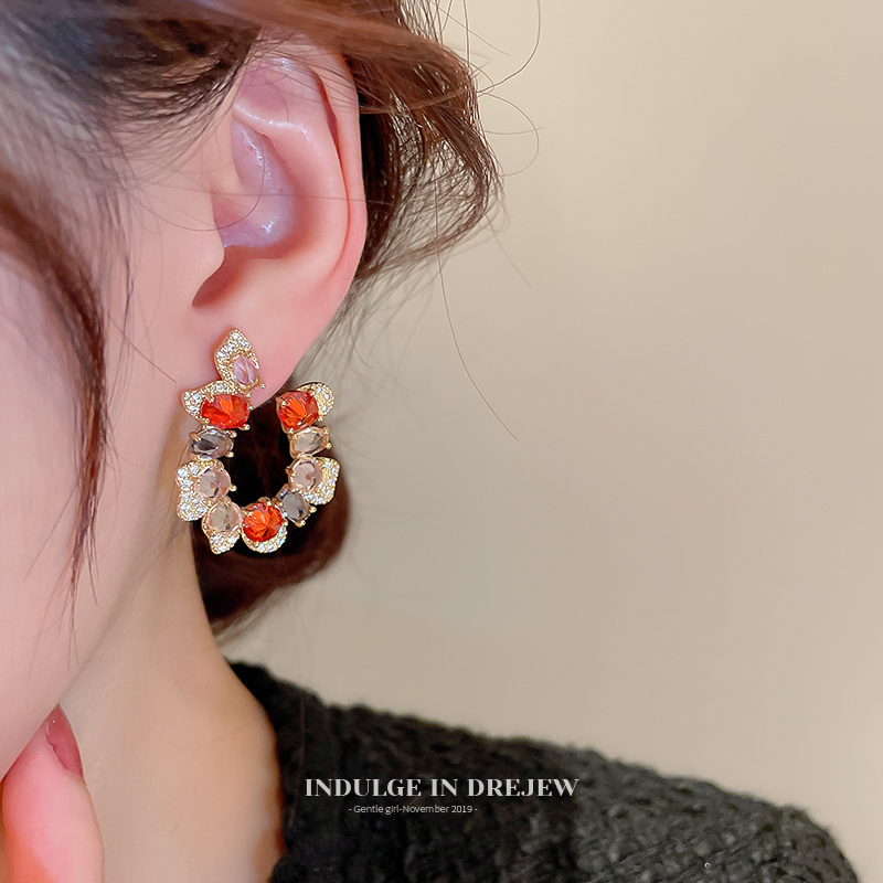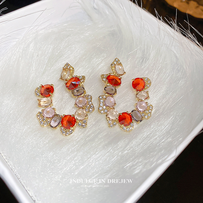 Drejew Zircon Fancy Earrings Stylish Niche Style 2025 New Arrival Tide Earrings Stylish Socialite Earrings for Women