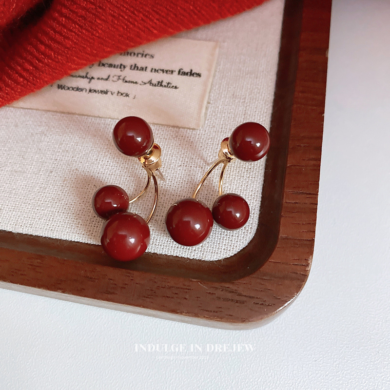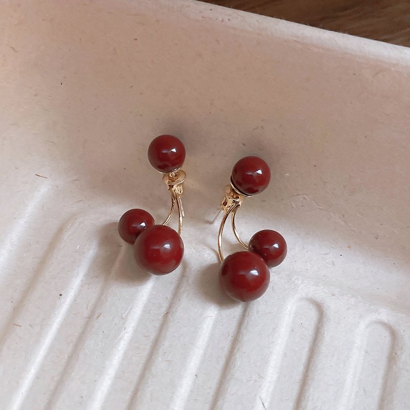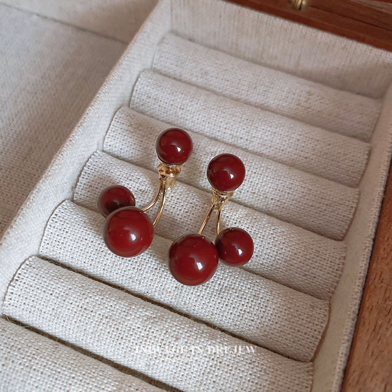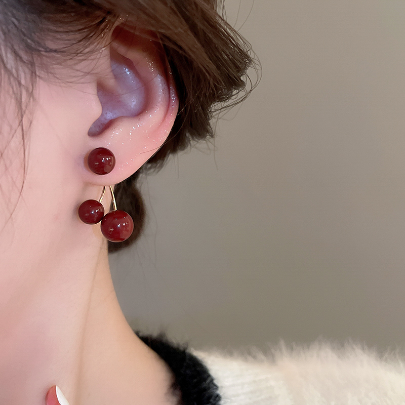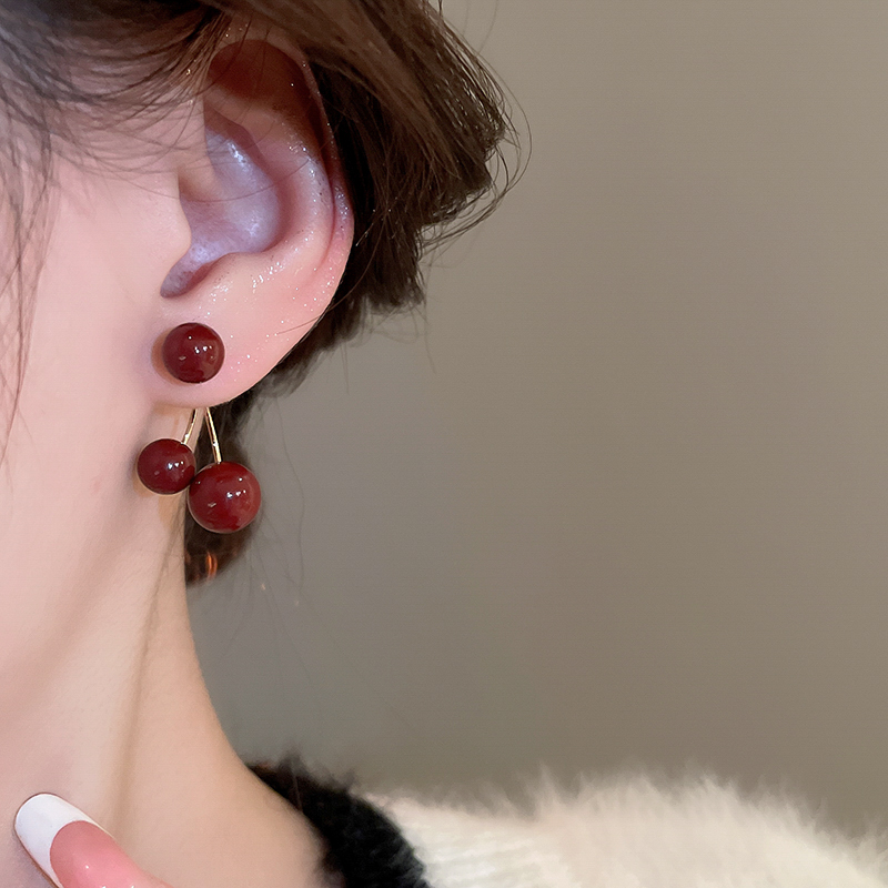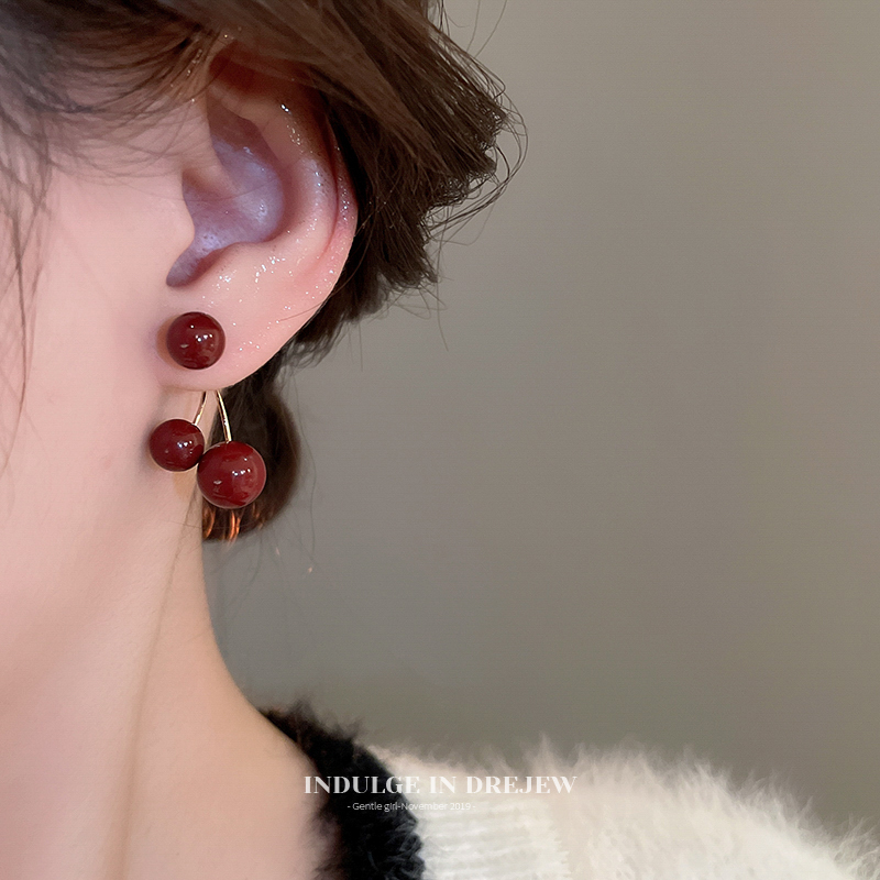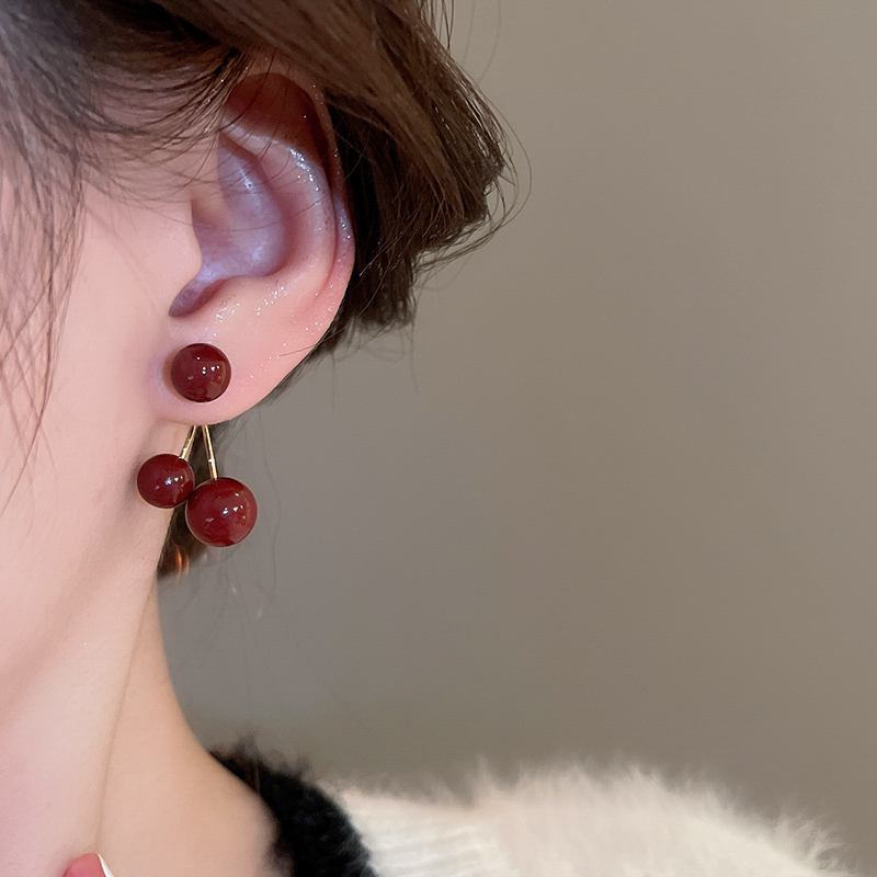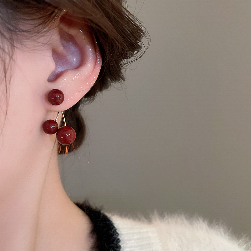 Dual-Wear Style Red Cherry Earrings Accessible Luxury Fancy Elegant Special Interest Earrings Retro New Arrival New Year Earrings Women