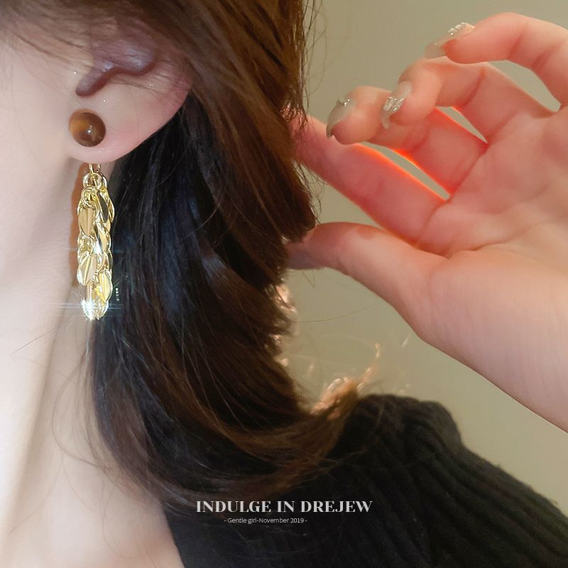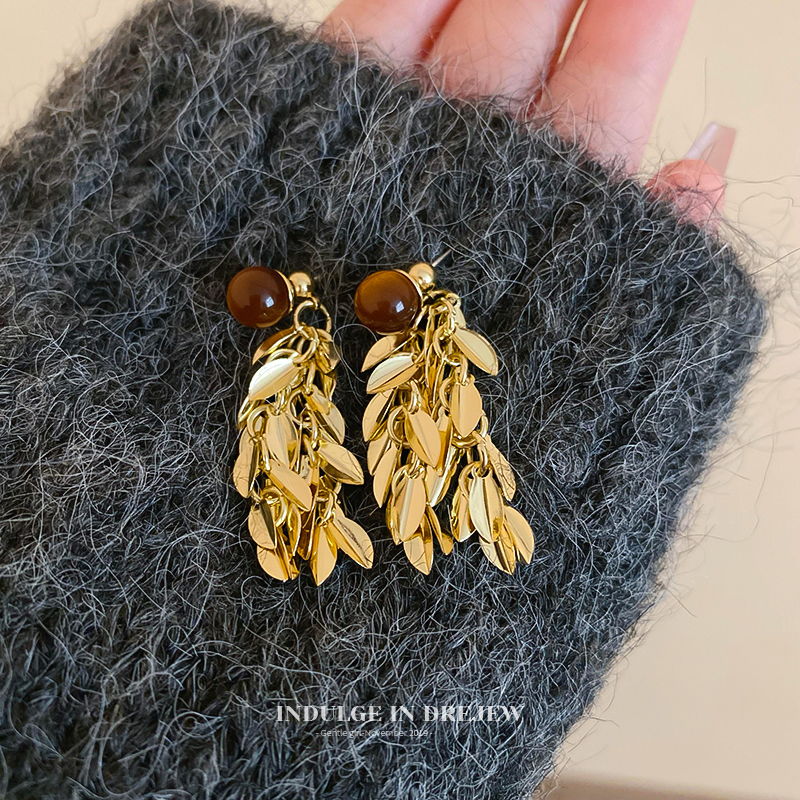 Dual-Wear Style Retro Coffee Color Ball Wheat Tassel Earrings Accessible Luxury Fancy Elegant Stud Earrings Maillard Earrings for Women