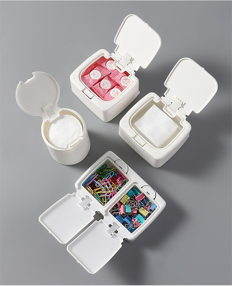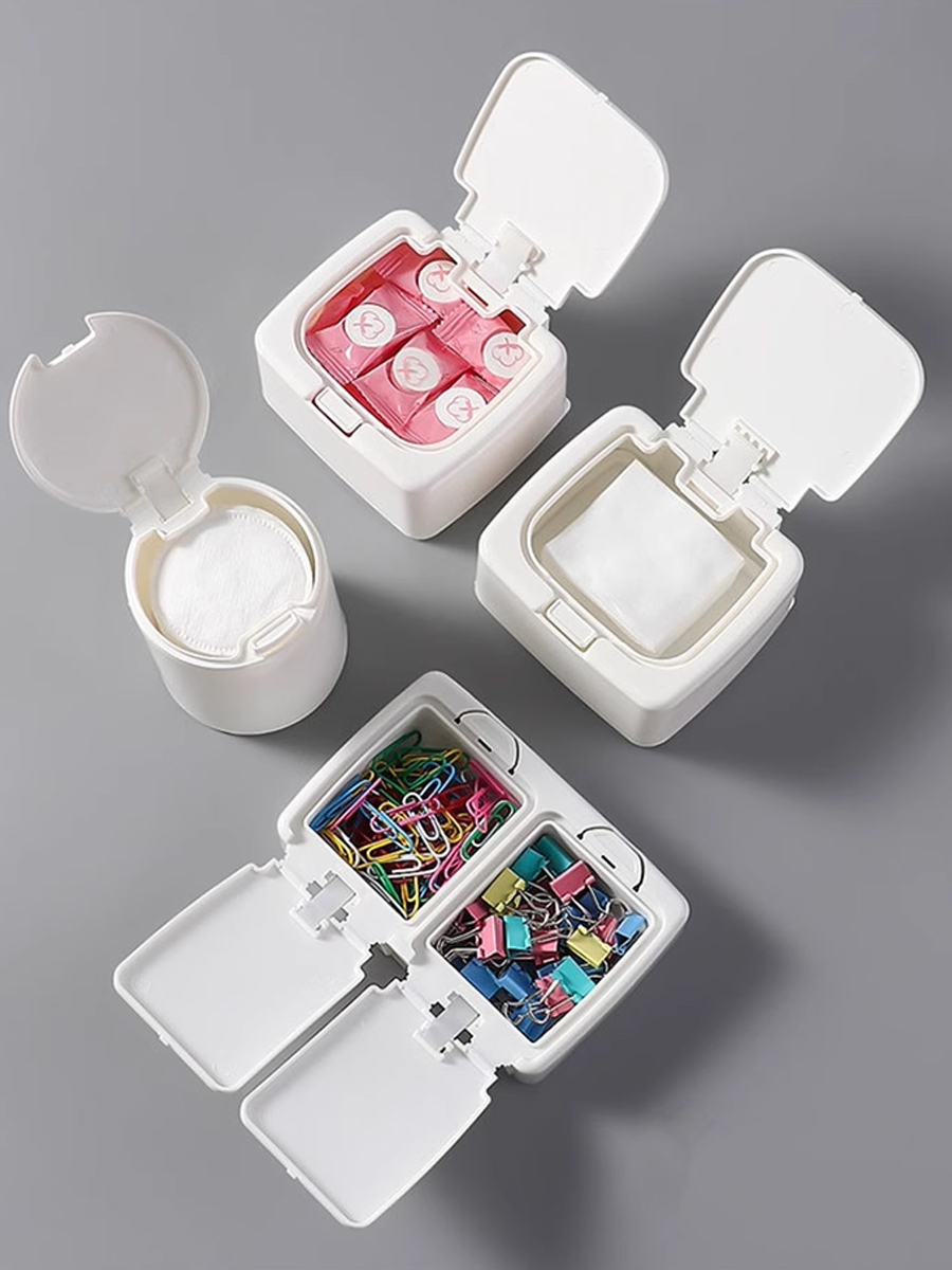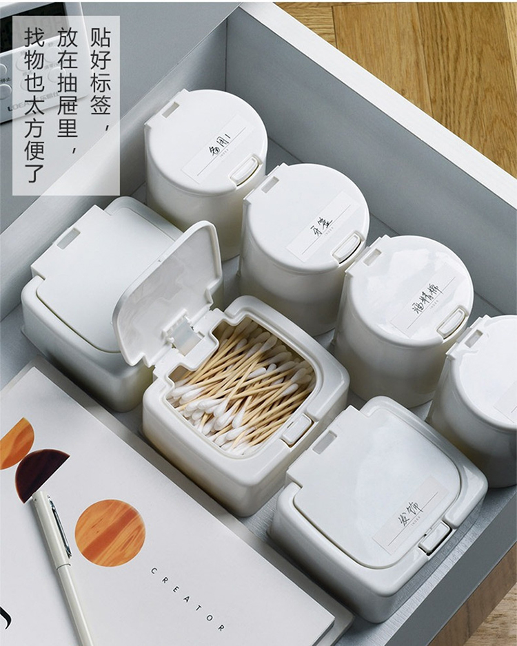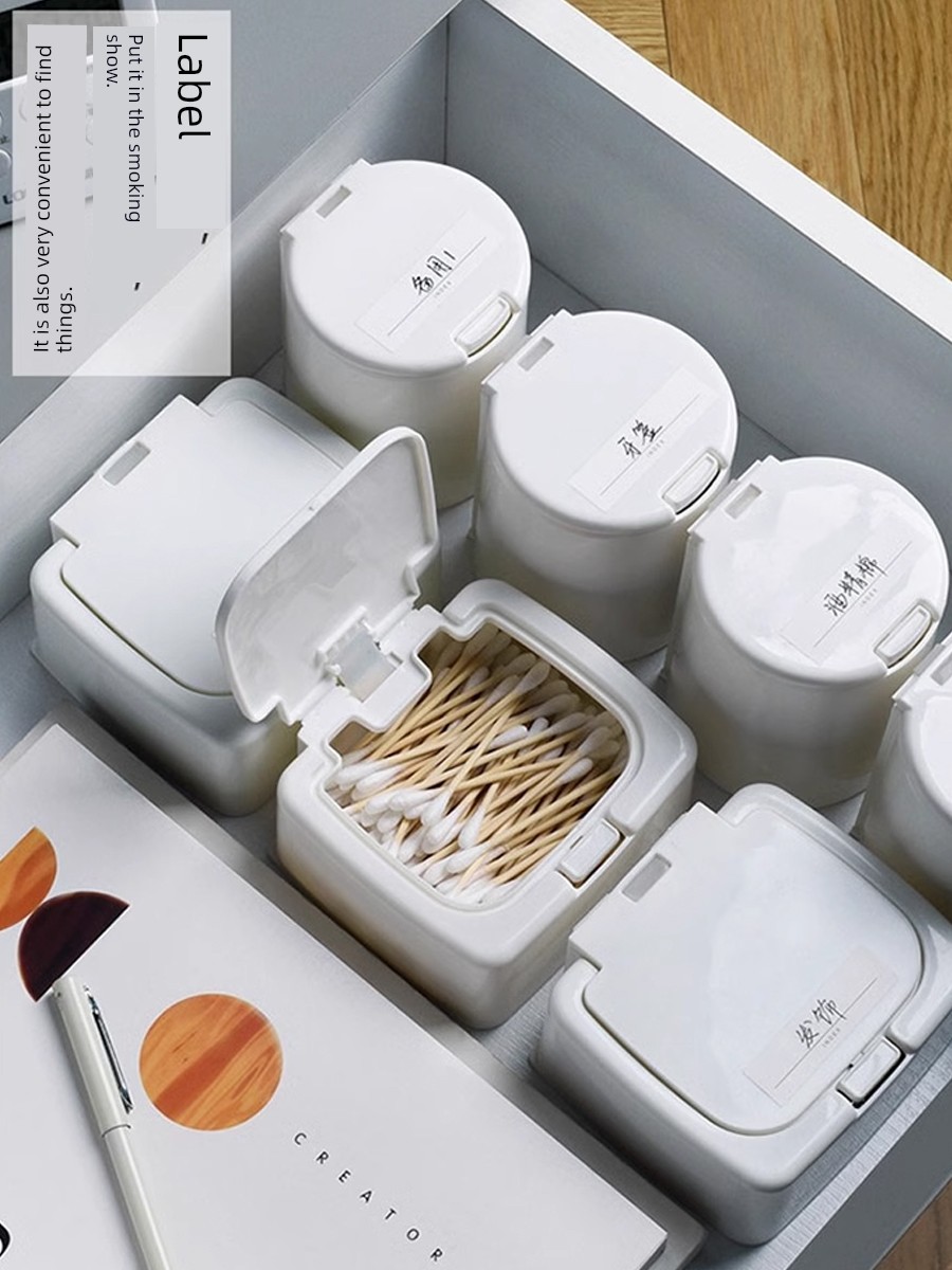 Dustproof Cotton Swab Storage Box Desktop Mini with Lid Pop-up Window Cotton Puff Plastic Dustproof Student Clutter Organizing Box