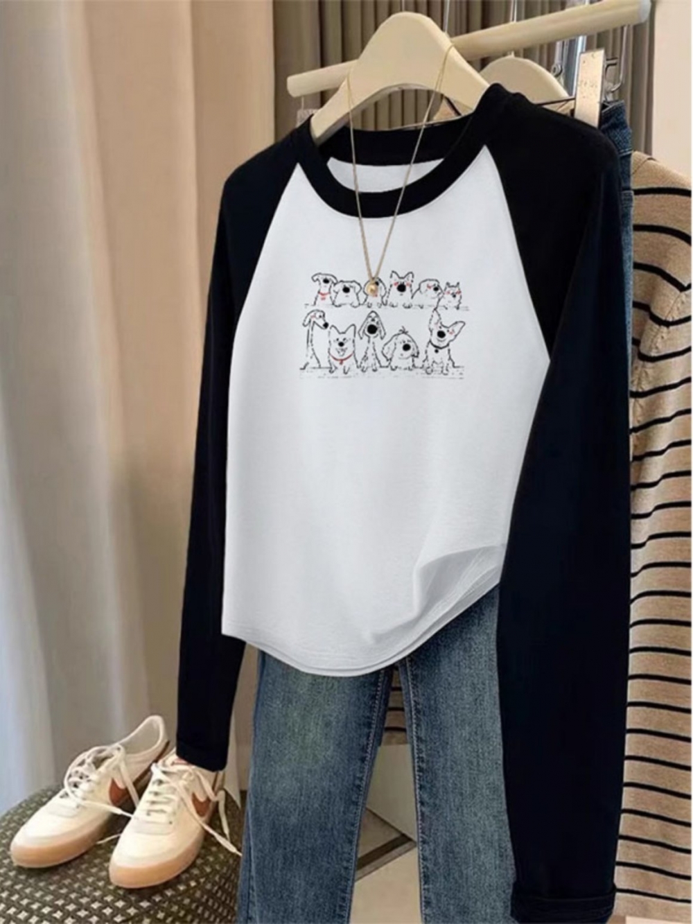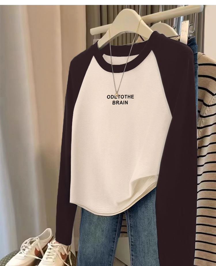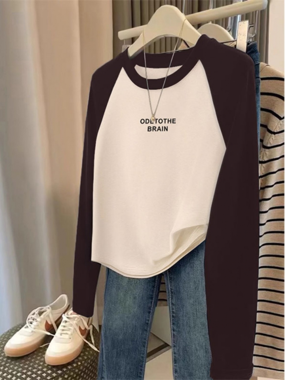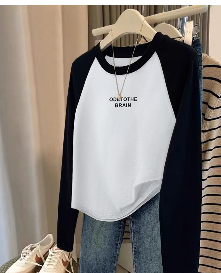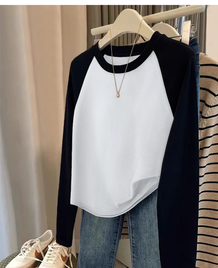 Early Spring 2025 Pure Cotton Silm Bottoming Shirt Women's Inner Wear Western Style Youthful-Looking Raglan Sleeve Short Upper Clothes Long Sleeves T-shirt Fashion