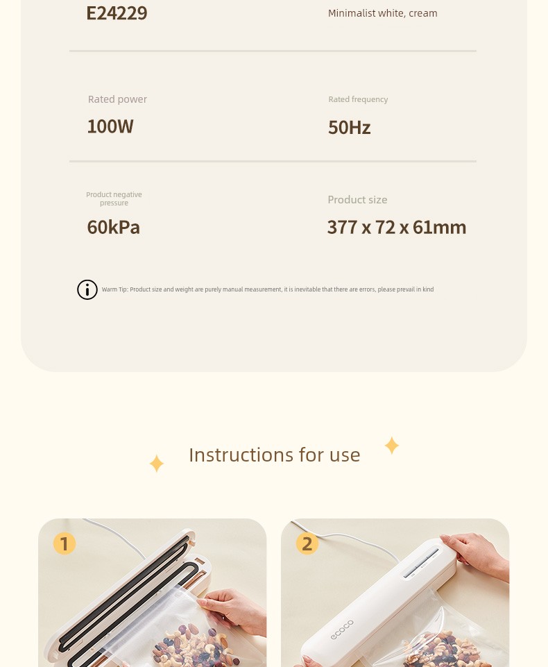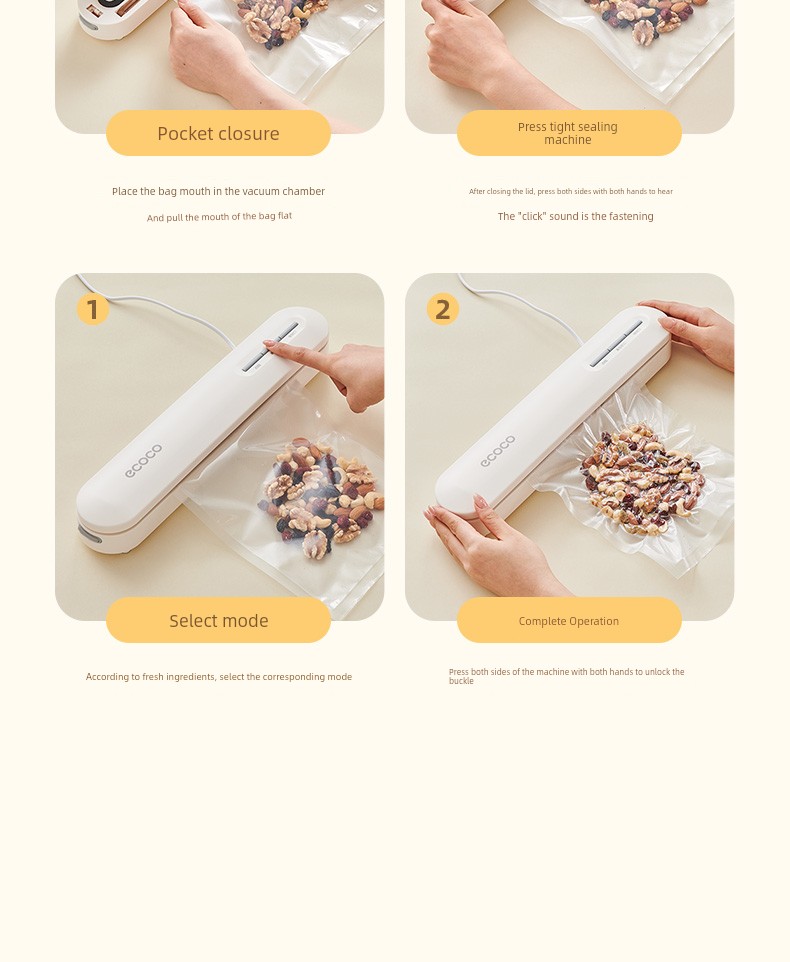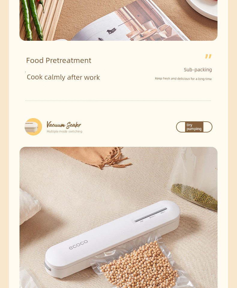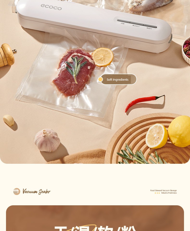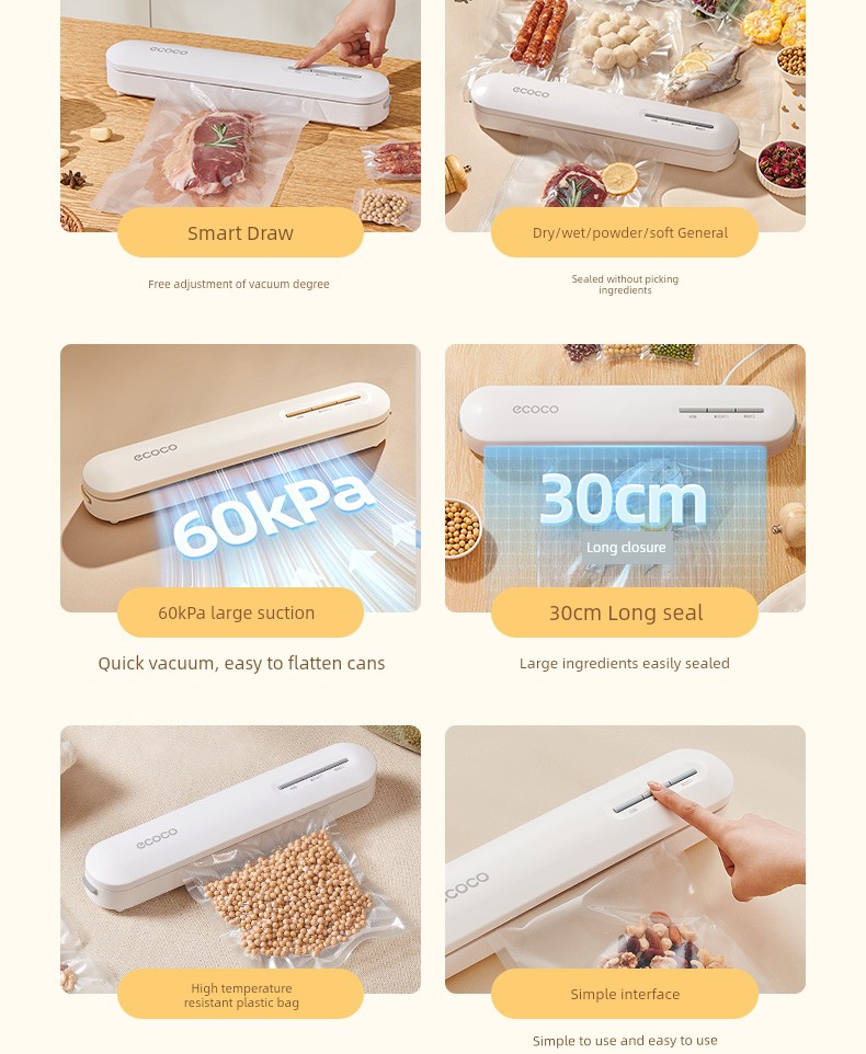 Ecoco Vacuum Sealing Machine Small For Home Automatic Food Packaging Vacuum Machine Keep Food Fresh Seal Plastic-Envelop Machine