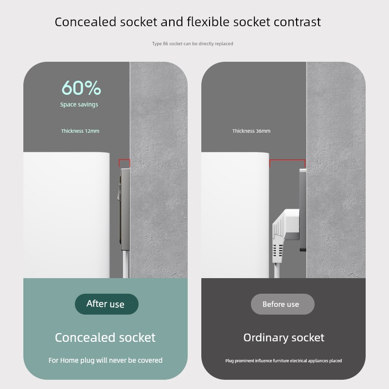 Embedded Invisible Socket Concave Wall Hidden 86-Type Embedded Socket For Home Panel Refrigerator Fiberglass Five-Hole