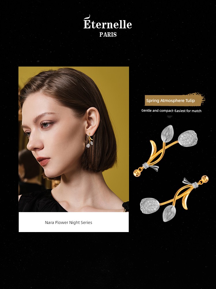 Eternelle French Eternal Nara Flower Night Series Earrings Accessible Luxury Fancy Earrings Niche Style Design Ear Studs