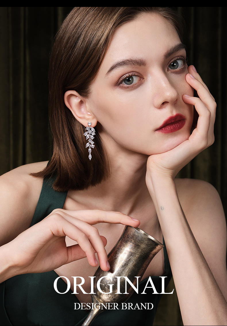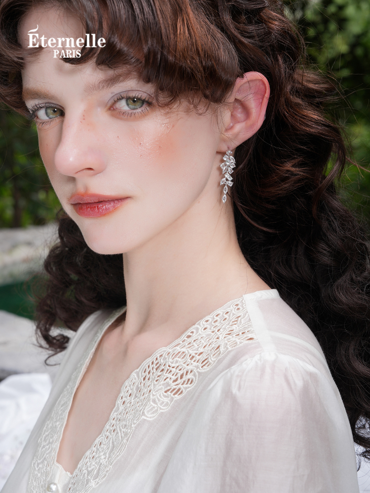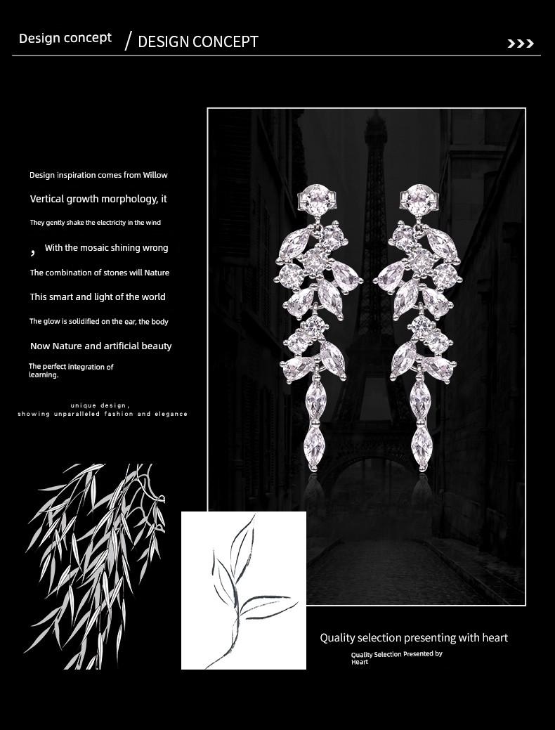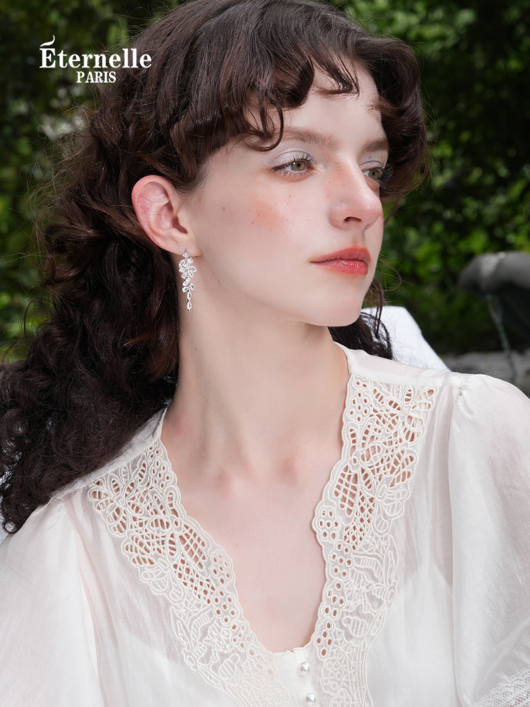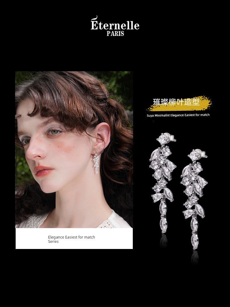 Eternelle French Eternal Original Willow Leaf Modelling Earrings Accessible Luxury Fancy Special Interest Earrings Sterling Silver Stud Earrings
