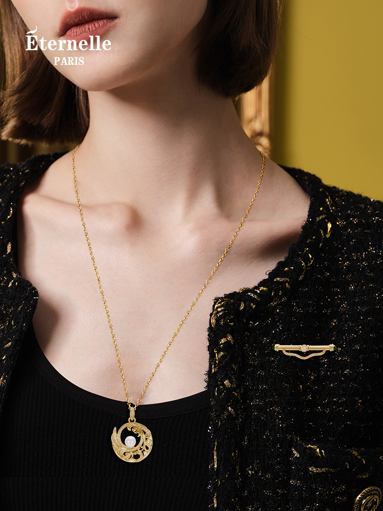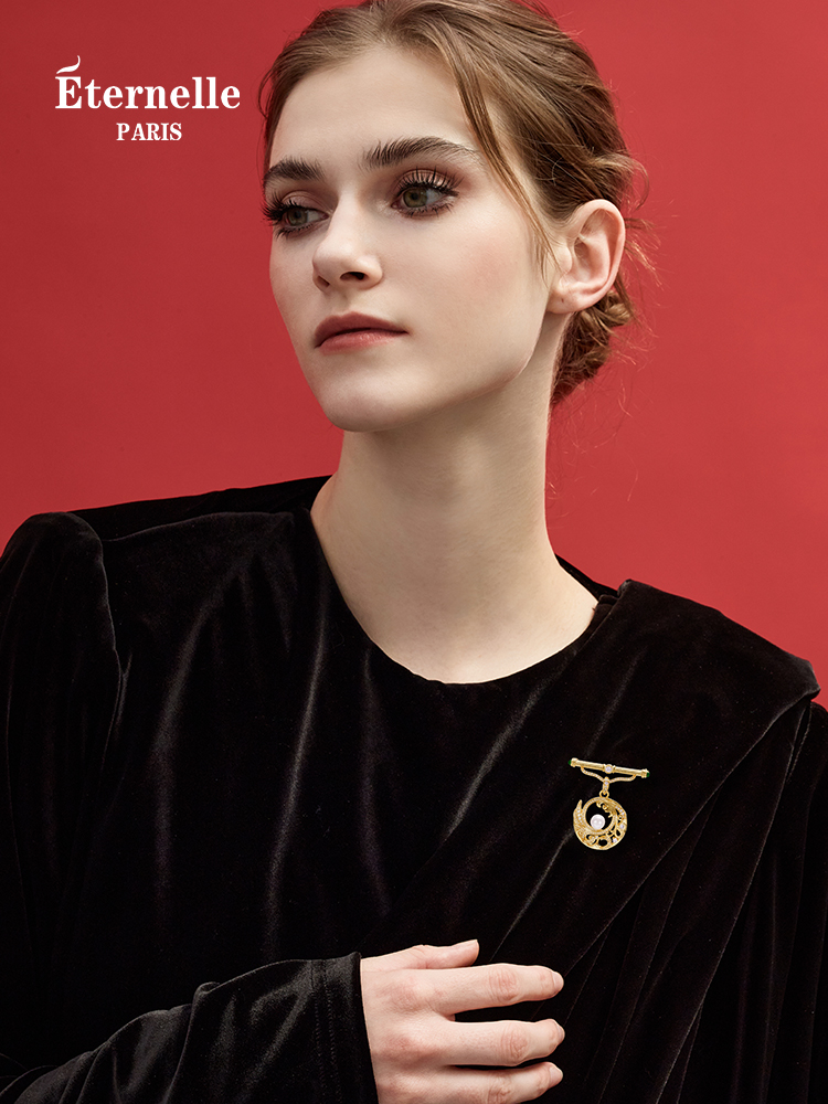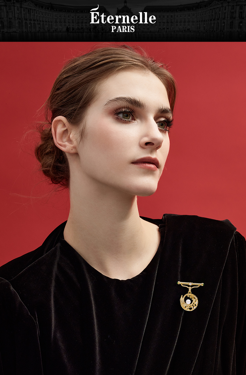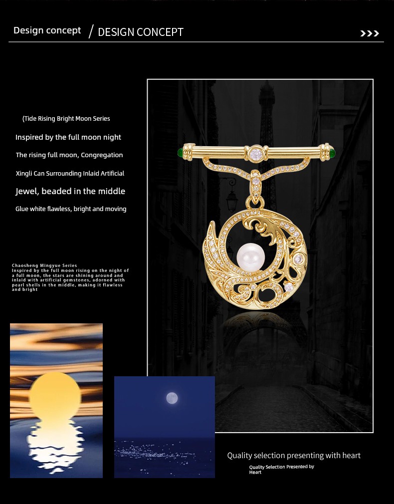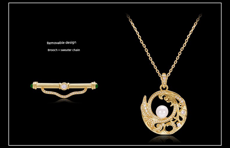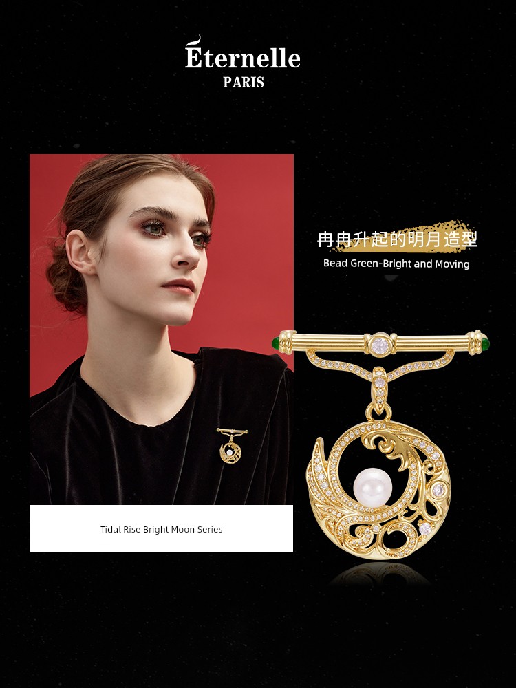 Eternelle French Eternal Tide Rising Moon Brooch Detachable Dual-Use Sweater Chain Pin Buckle Corsage Gift
