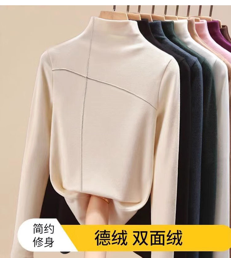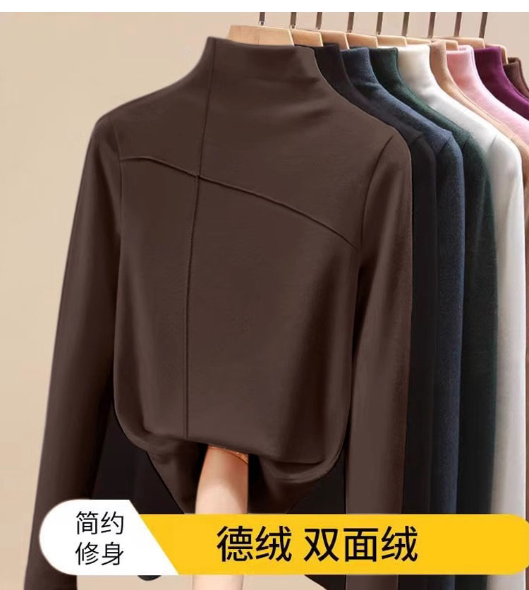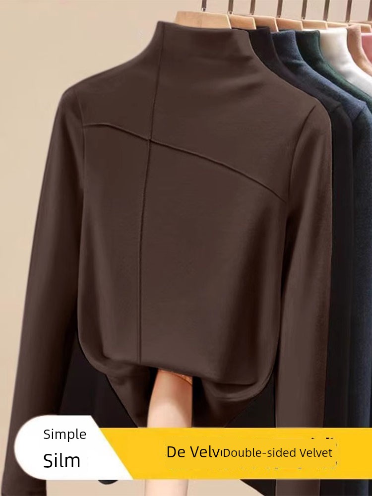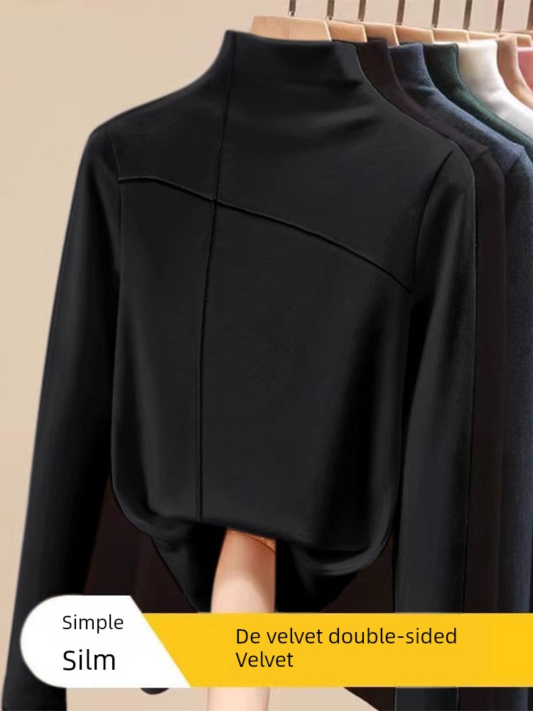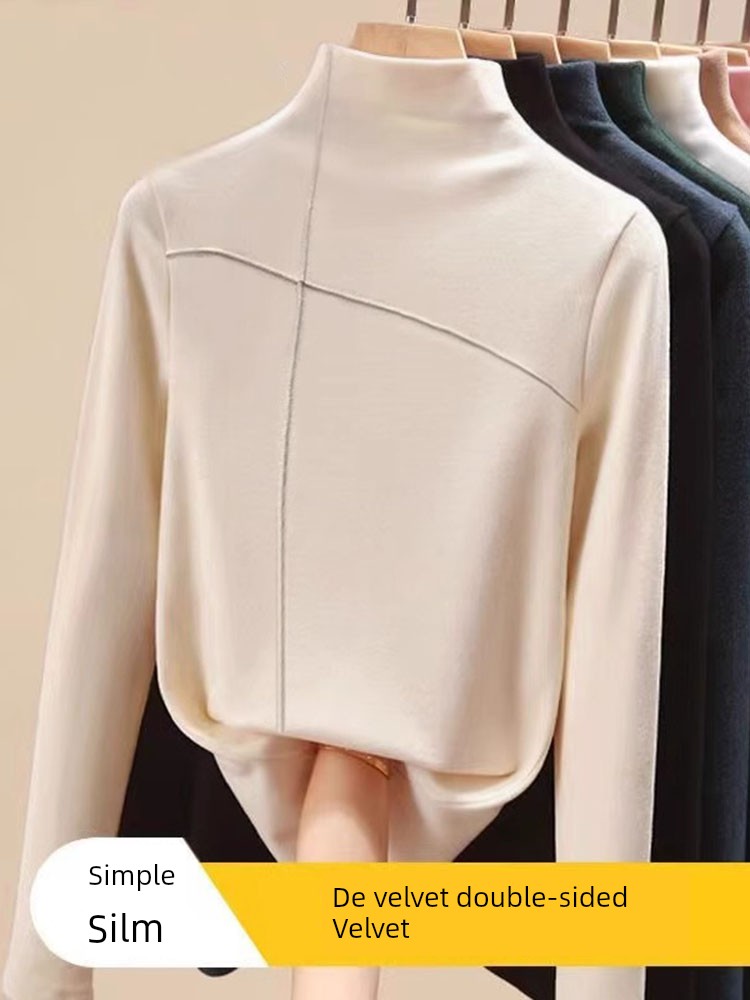 EU and South Korea Goods Half Turtleneck Dralon Bottoming Shirt Women's Fall and Winter New Arrival Fleece-lined Thickened Classy Inner Wear Design Blouse