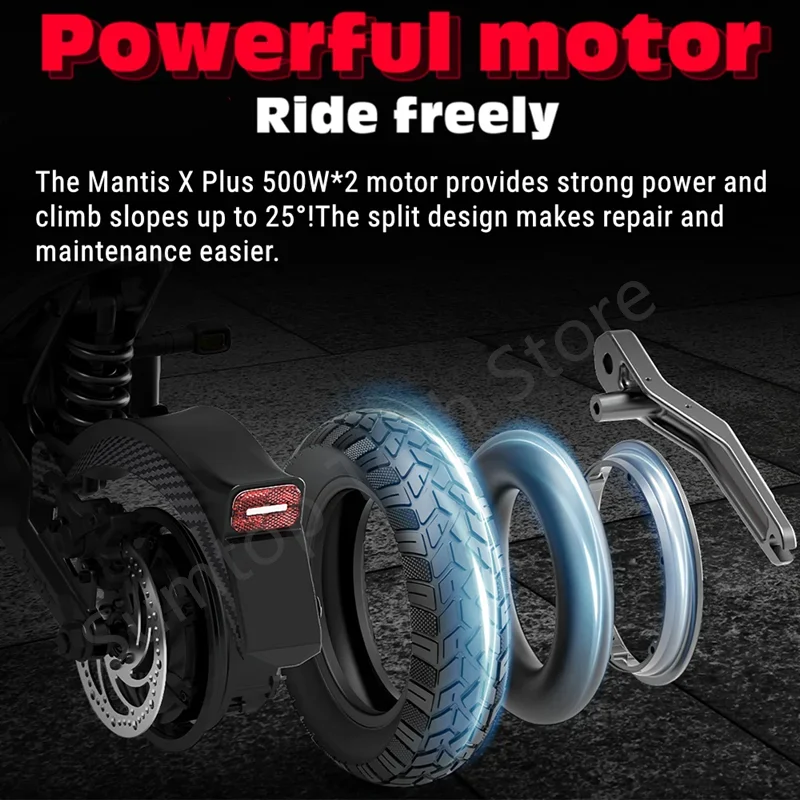The MantisX PLUS 2184W motor provides strong power and climb slopes up to 25°!
