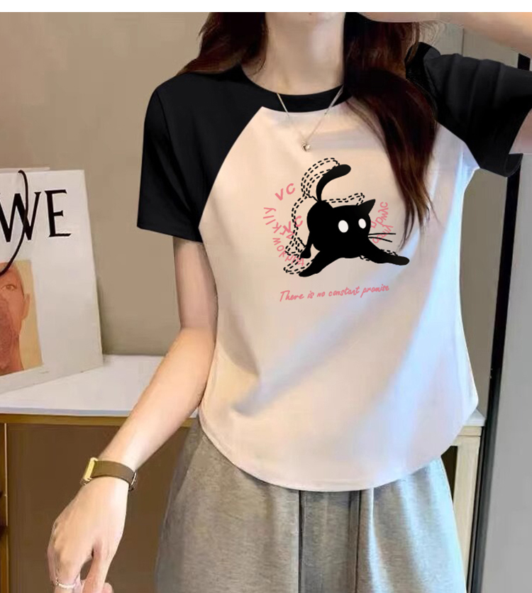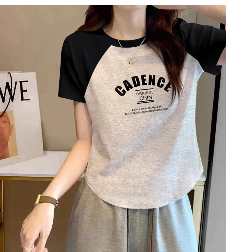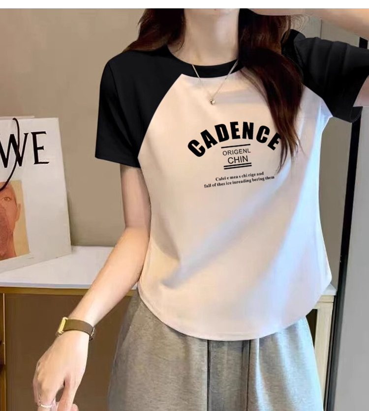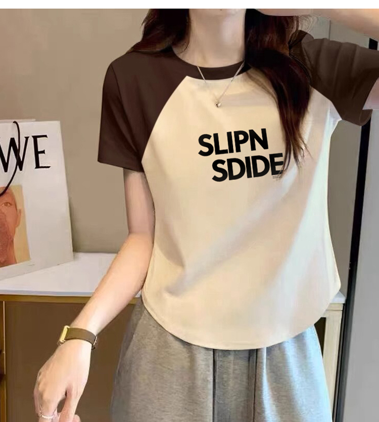 European Goods 2025 New Patchwork Contrast Color Pure Cotton Short-Sleeved Raglan T-shirt Women's Summer Silm Slim Looking Letter Jacket