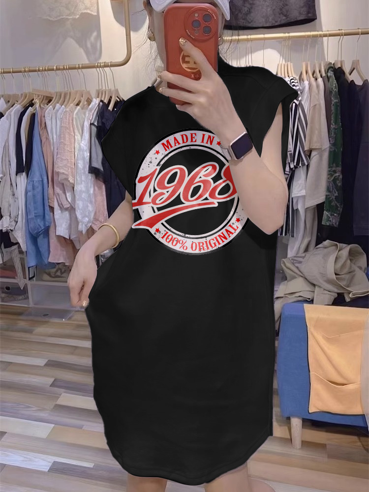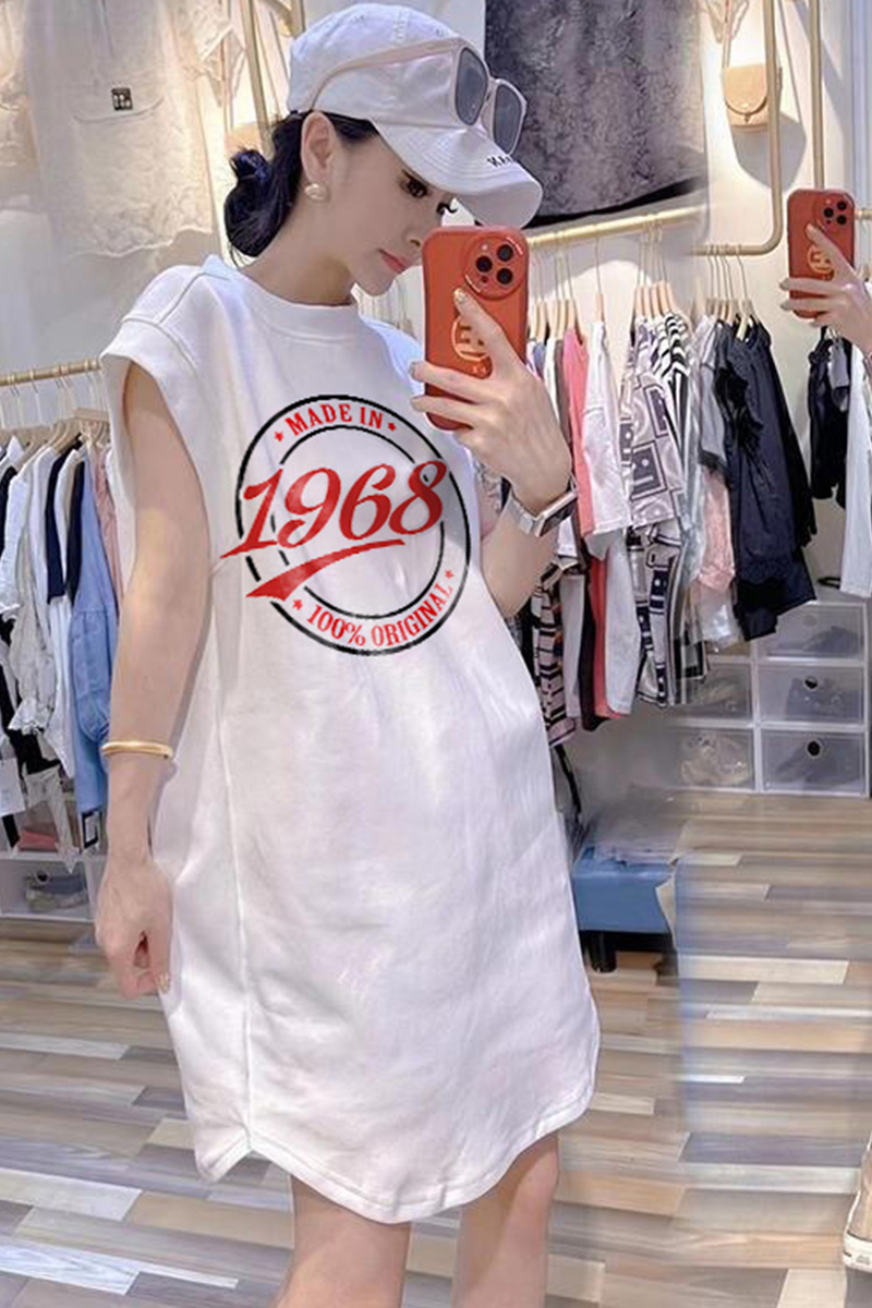 European Goods Chubby Girl Plus Size 100.00kg Summer Pure Cotton Tank Top T-shirt Skirt Women's Slim Looking Mid Length Long Length Western Style Sleeveless Dress