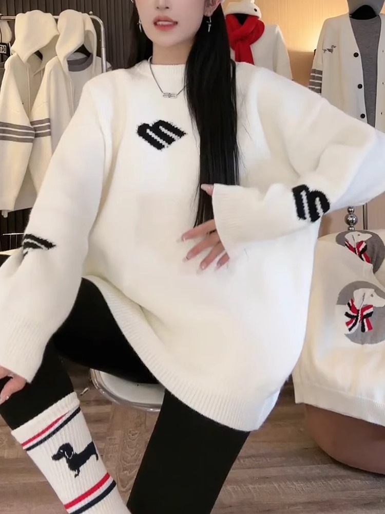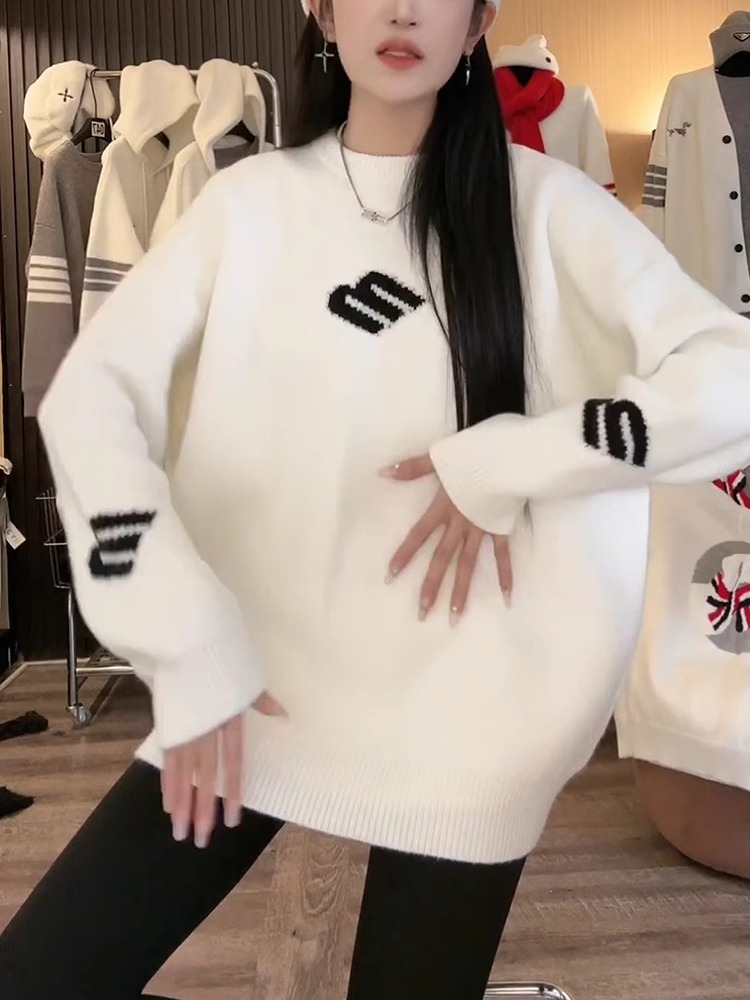 European Goods Heavy Weight Early Spring and Autumn Large round Neck Sweater Female 2025 New Arrival Mid Length Long Length Hip-Covering Western Style Top Tide