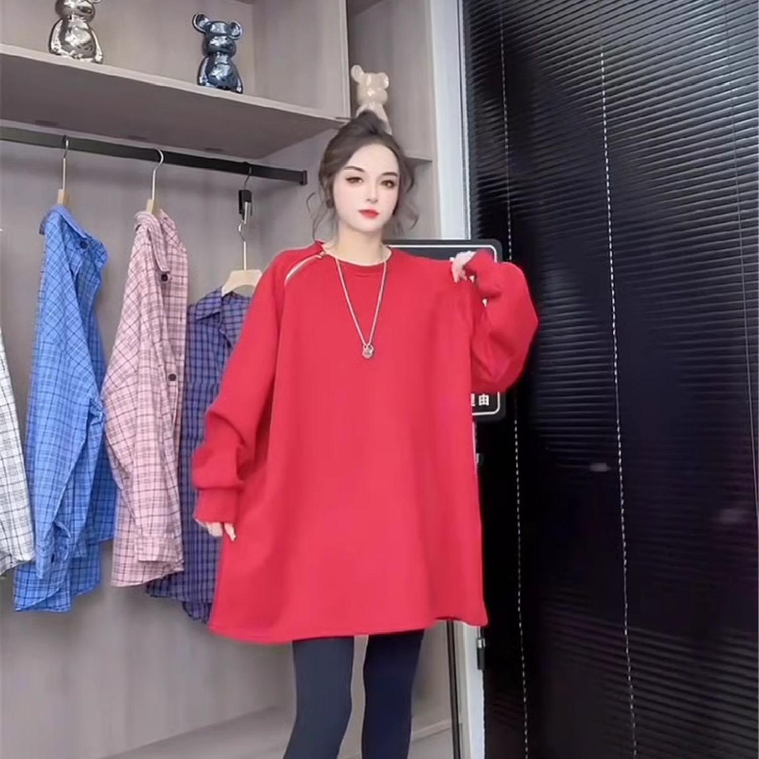 European Goods Plus Size 1.00 Kg-150.00 kg Sweatshirt Female Fat Girl Autumn and Winter Loose Slimming and Fashionable Zipper Shoulder K-style Velvet Hoodie Tide