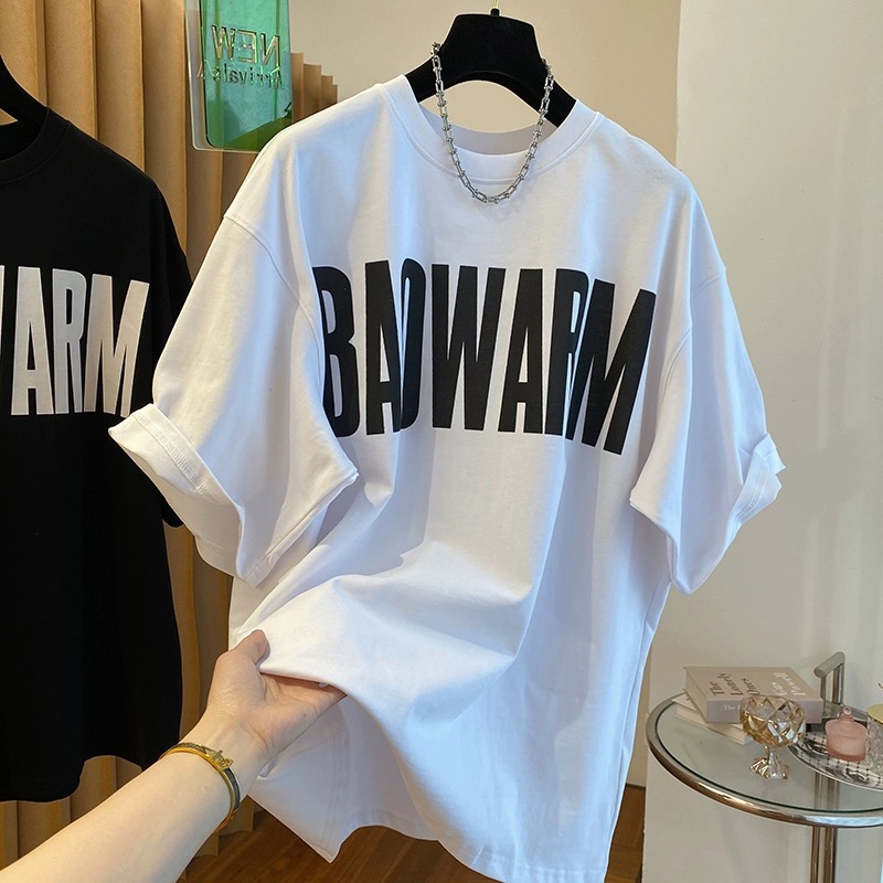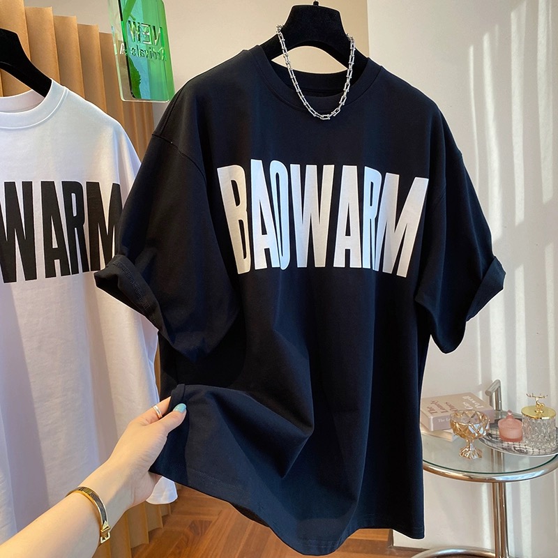 European Goods Plus Size Summer Pure Cotton Letter Print Short-Sleeve T-Shirt Female 100.00kg Plus Size Ladies Slim Looking Belly Covering Cool Feeling Tops Tide