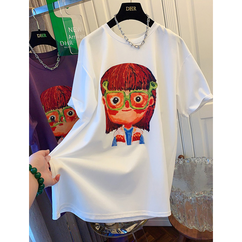 European Goods Summer Plus Size Ladies Plus Size Women's Cotton Short-Sleeved T-shirts 2024 New Arrival Loose Hip-Covering Western Style Top Tide