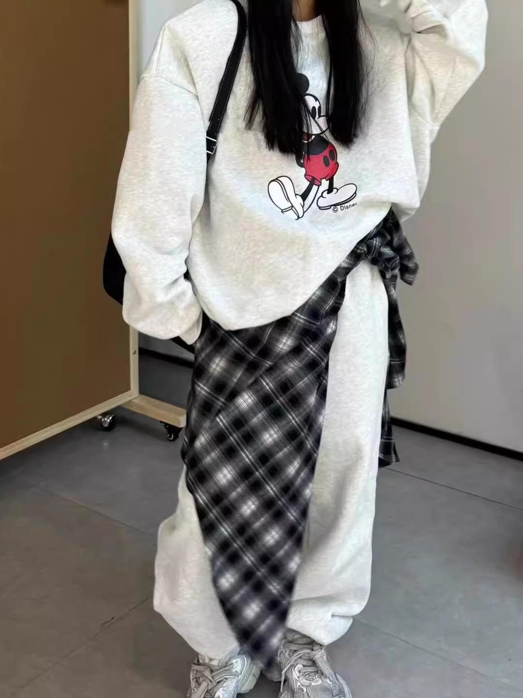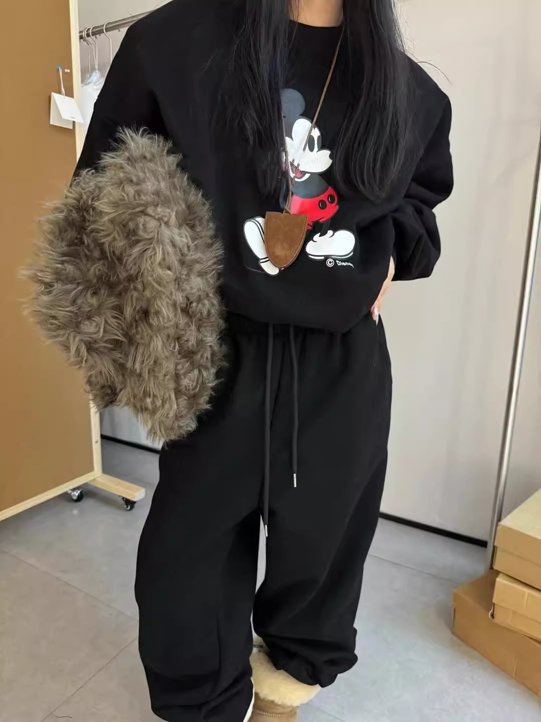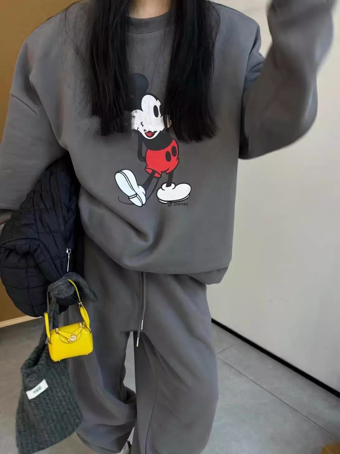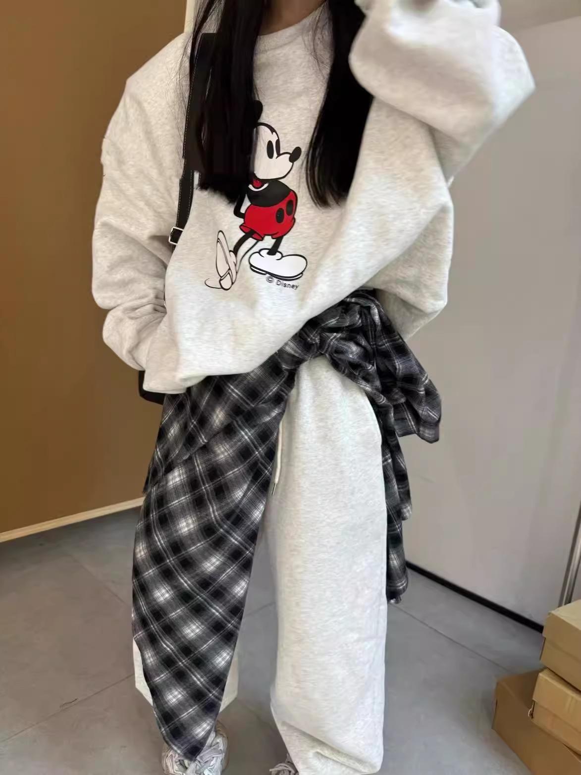 European Station 2025 Fall New Cartoon Mickey Printed Fleece Hoodie Female Fashionable Stylish All-Matching round Neck T-shirt