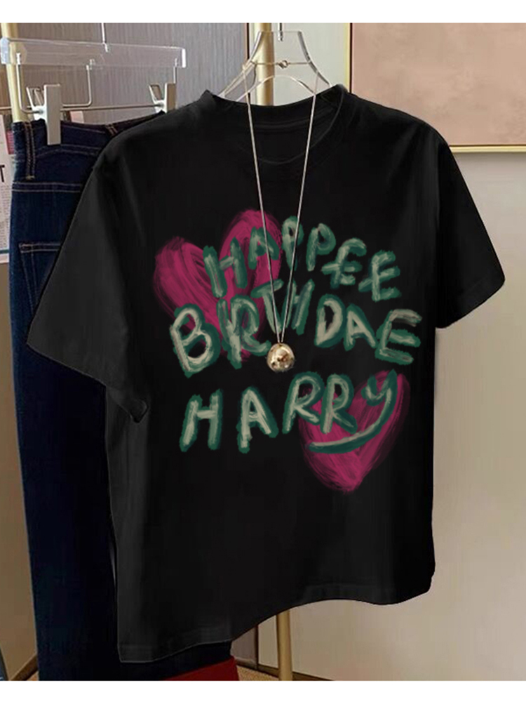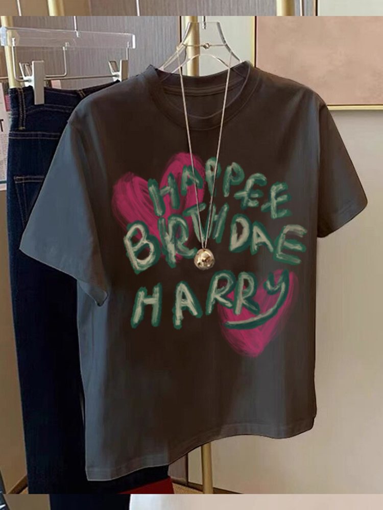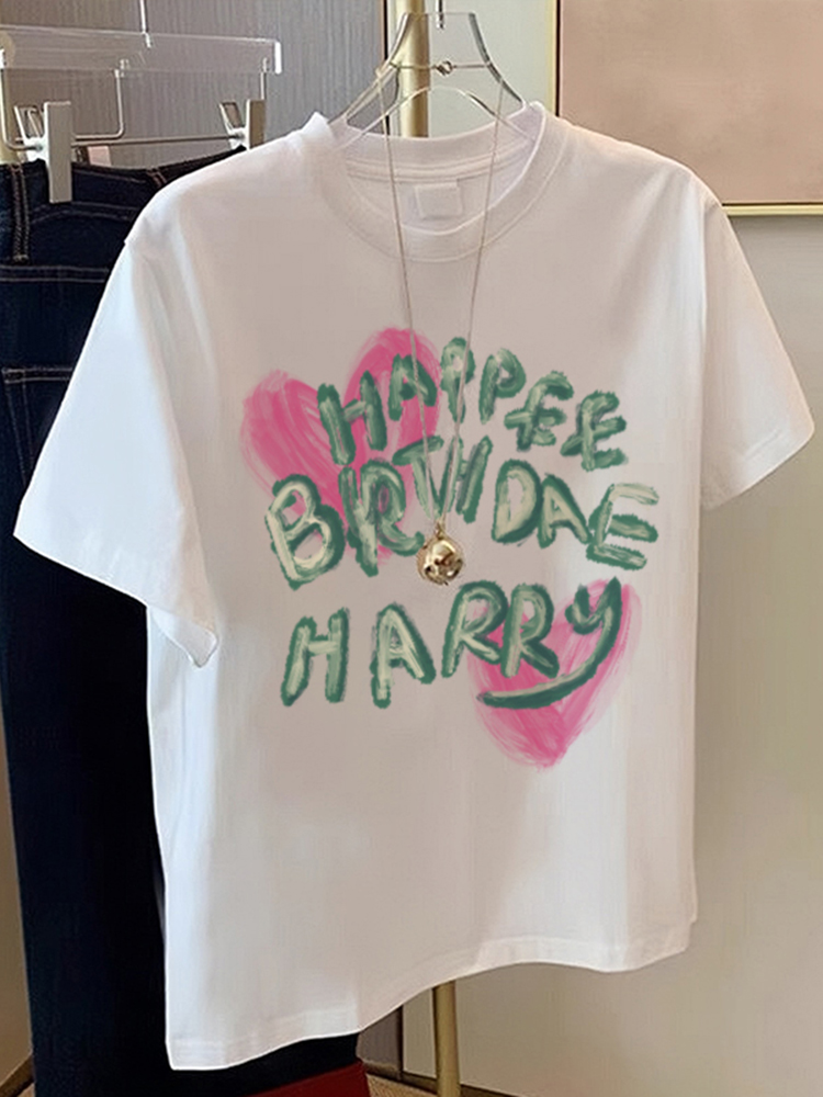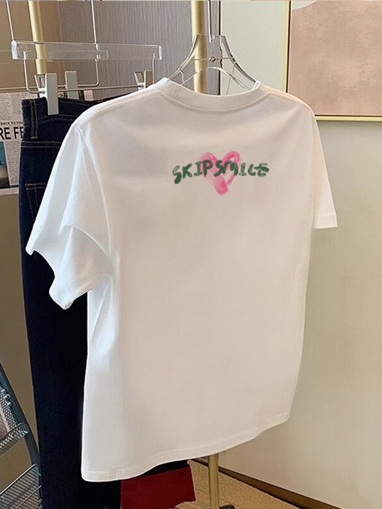 European Station 2025 Summer New Arrival Letters Heart Short-Sleeved T-shirt Pure Color Versatile Casual Slim-Fit Loose Tops Women