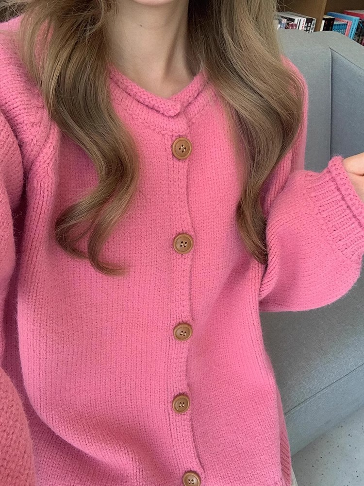 European Station Classy 2025 Autumn New Arrival Raspberry Color Sweater Cardigan Women's Clothes Fancy Wear Wear Tops European Goods Tide