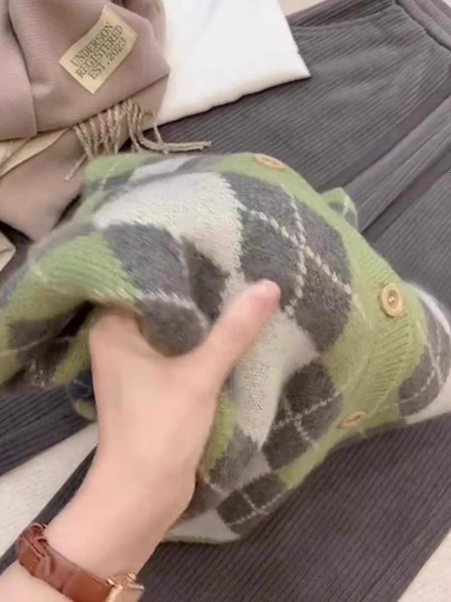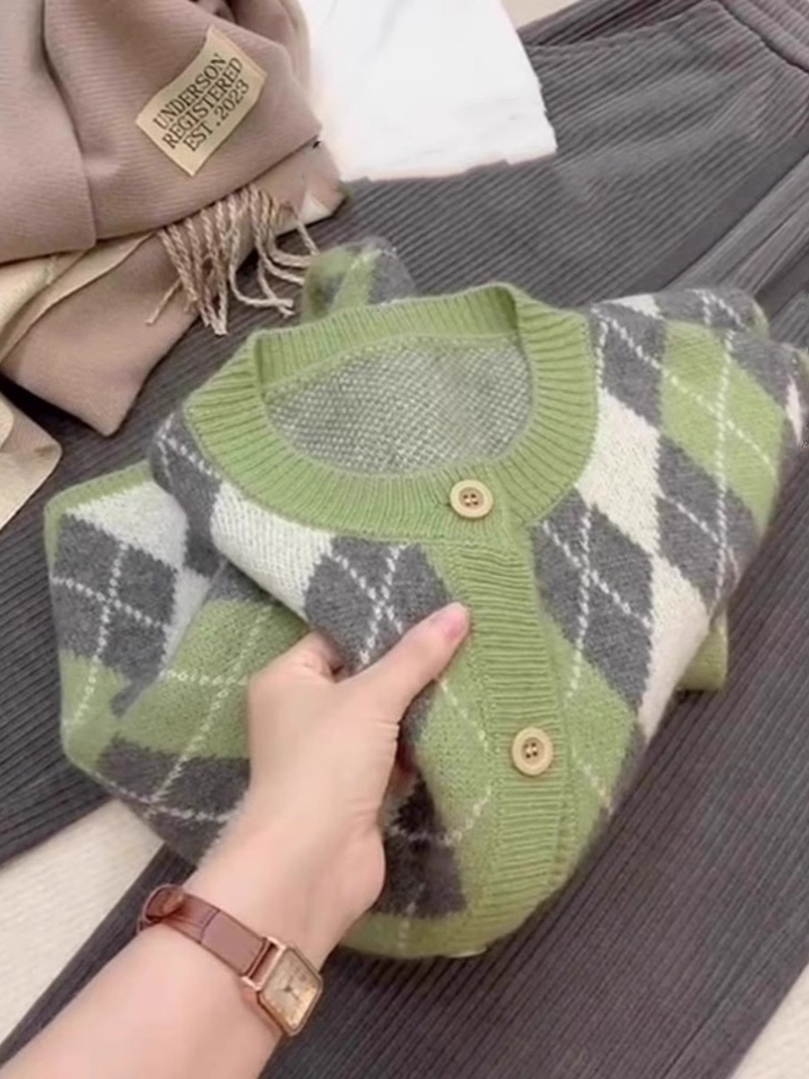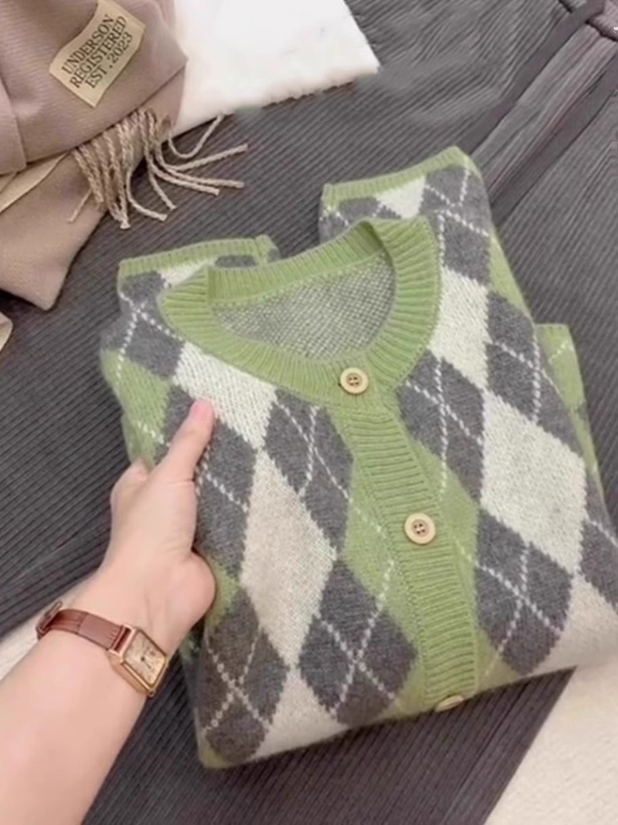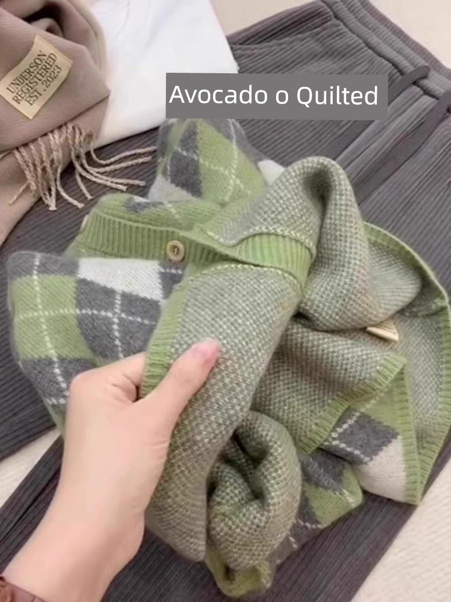 European Station New Green Quilted Raccoon Velvet Sweater Outwear Female Spring & Fall 2025 Best Selling Thick Loose Knitwear
