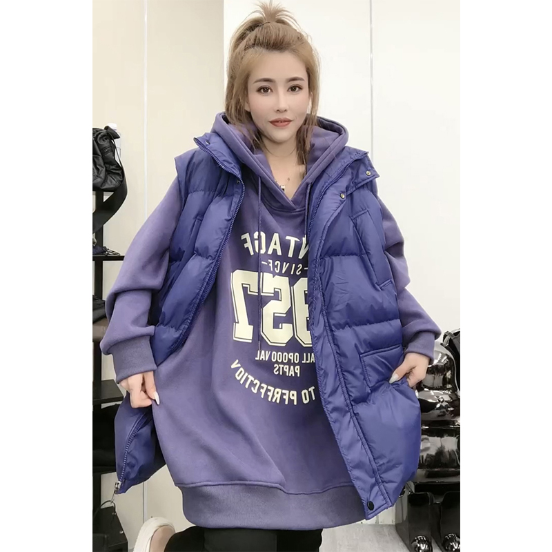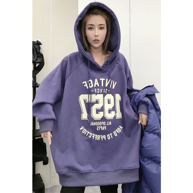 European Station Plus Size 1.00 Kg-150.00 kg Plus Size Ladies Extra Large Extra Thick Hooded Number Print Fashion Fashionable Sweater Women's Top