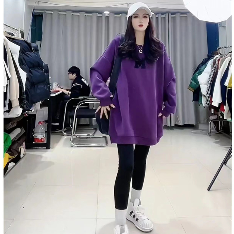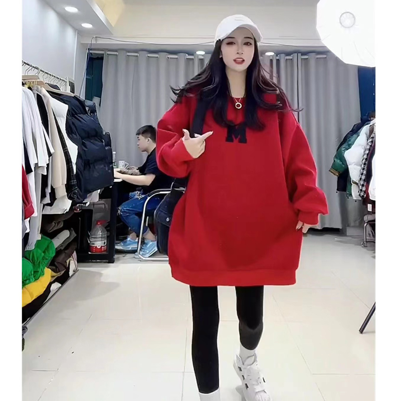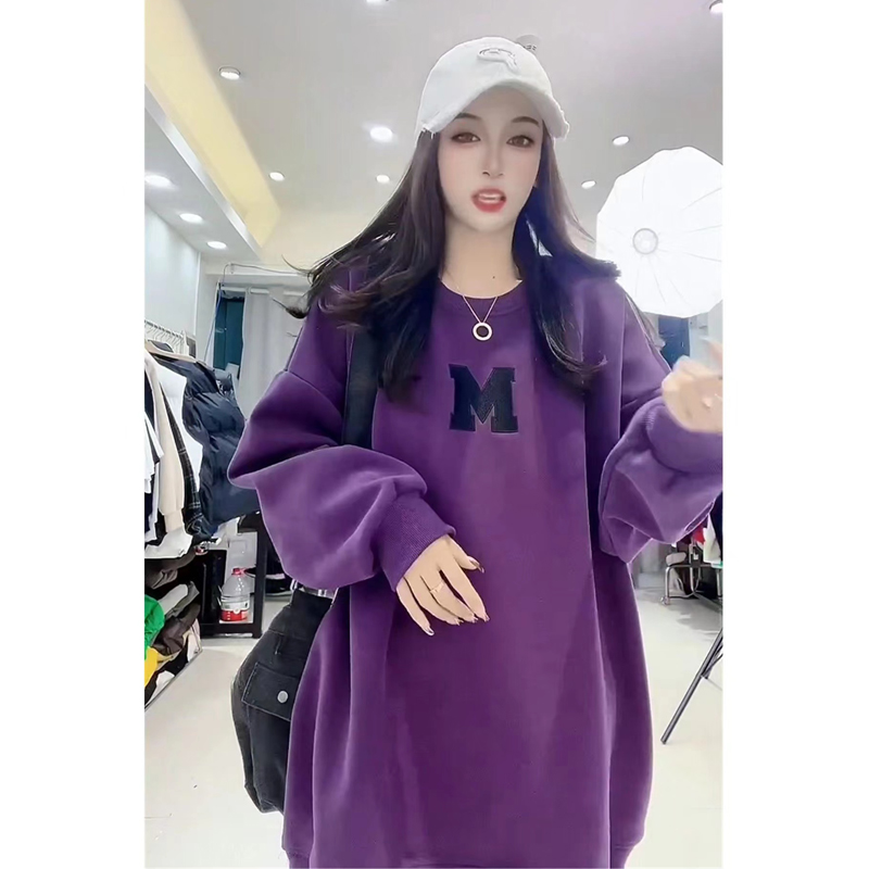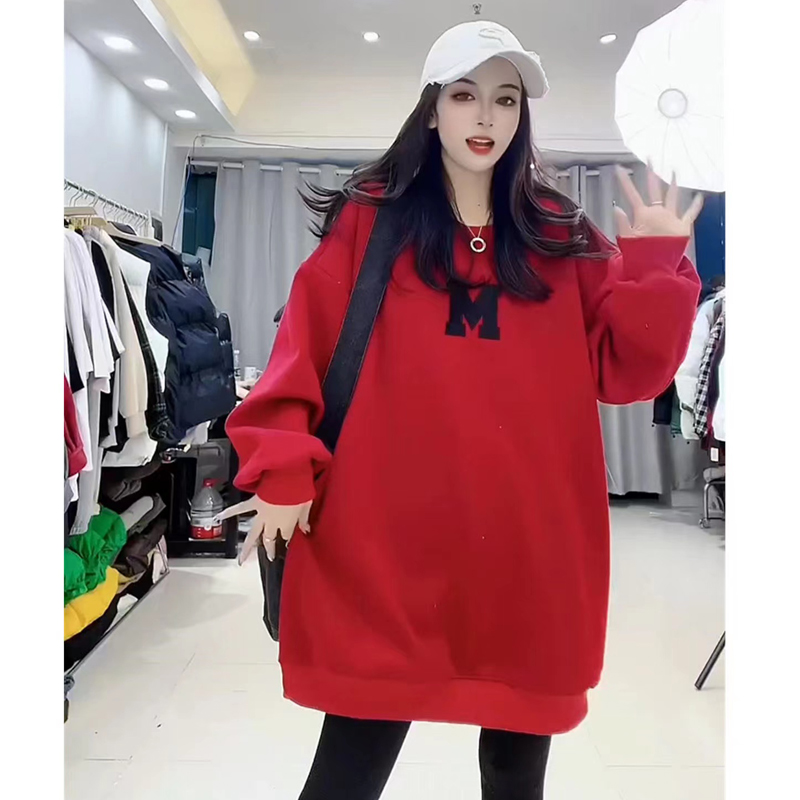 European Station Plus Size 1.00 Kg-150.00 kg Plus Size Ladies Fleece-lined Thickened Fall and Winter New Arrival Print Letter Western Style Leisure Sweatshirt Female
