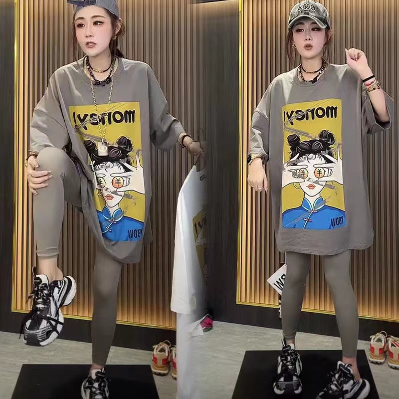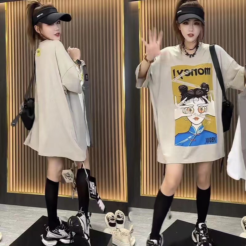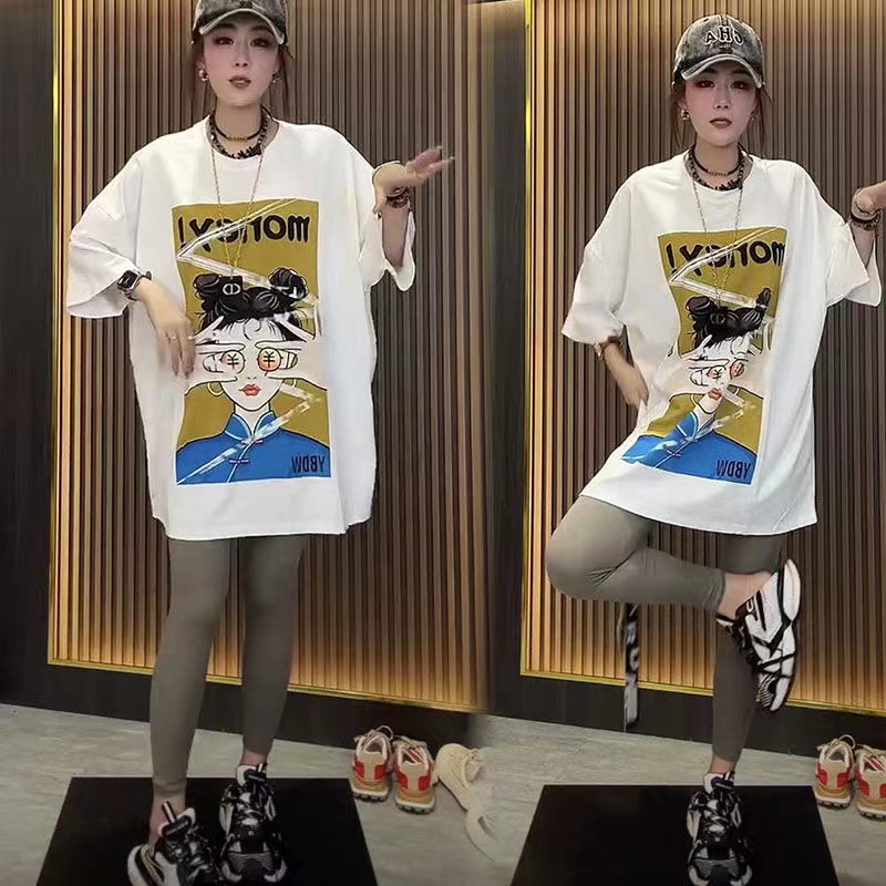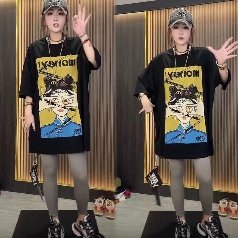 European Station Plus Size Cartoon Print Short-Sleeved T-shirt Women's Summer All-Matching Western Style Loose Slim Fit Bottoming Shirt Tops Fashion