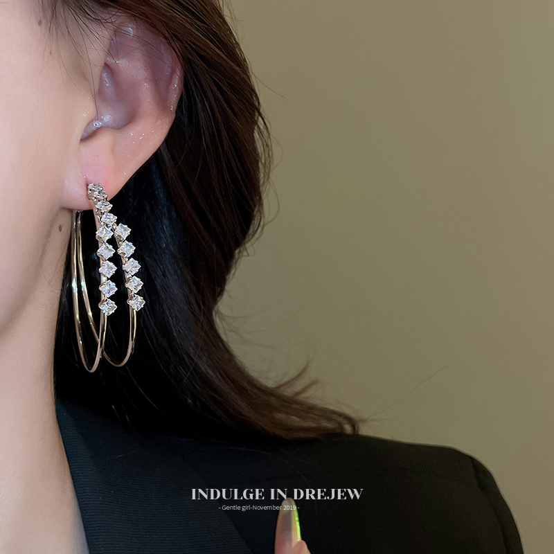 Exaggerated Double-Layer Big Circle Silver Ear Ring Niche Design Hoop Earrings 2025 New Arrival Fancy Earrings for Women