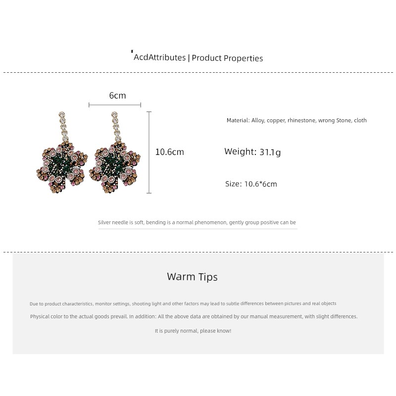 Exaggerated Long Color Flower Stud Earrings Accessible Luxury Fancy Dignified Generous Style Rhinestone Earrings New Arrival European and American Earrings Women