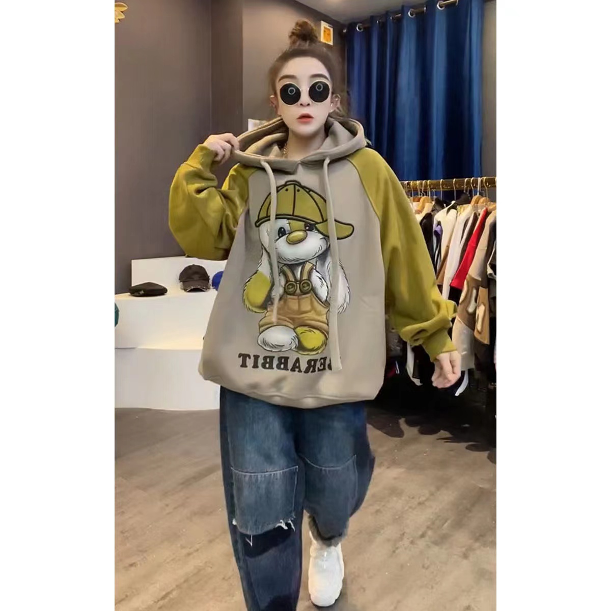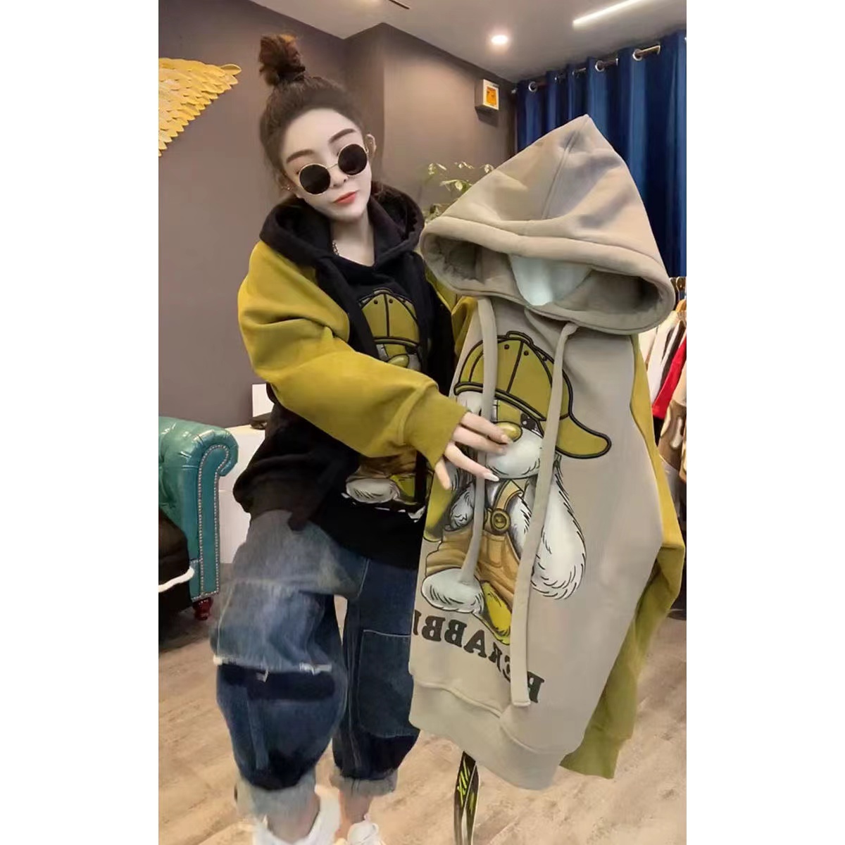 Extra Large 1.00 Kg-150.00 kg Chubby Girl Fashion Fashion Brand Mid-Length Fleece-lined New Hoodie Women Winter Leisure Patchwork Outerwear